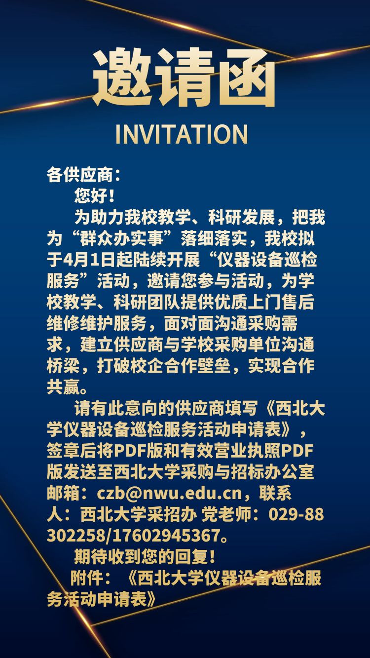 致各供应商:西北大学仪器设备巡检服务邀请函