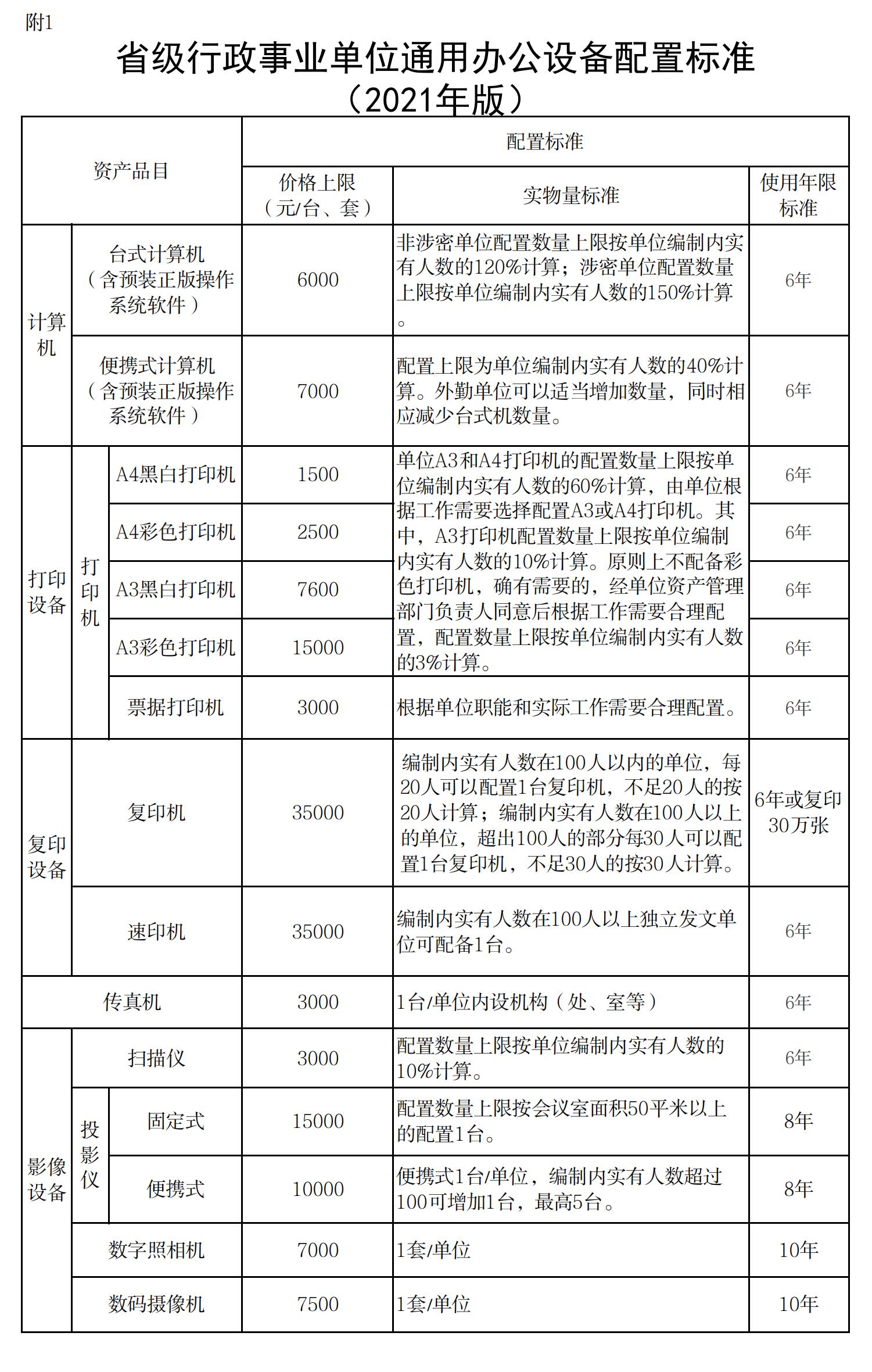 按照“陕西省财政厅关于印发《省级行政事业单位通用办公设备及家具配置标准(2021 年版)》的通知”要求,校内各采购单位教职工在学校采购服务平台下单购买办公设备、办公家具的限额要求需遵照《省级行政事业单位通用办公设备配置标准(2021版)》和《省级行政事业单位通用办公家具配置标准(2021版)》要求执行,不可超过此限额下单购买办公设备和家具,特此说明。