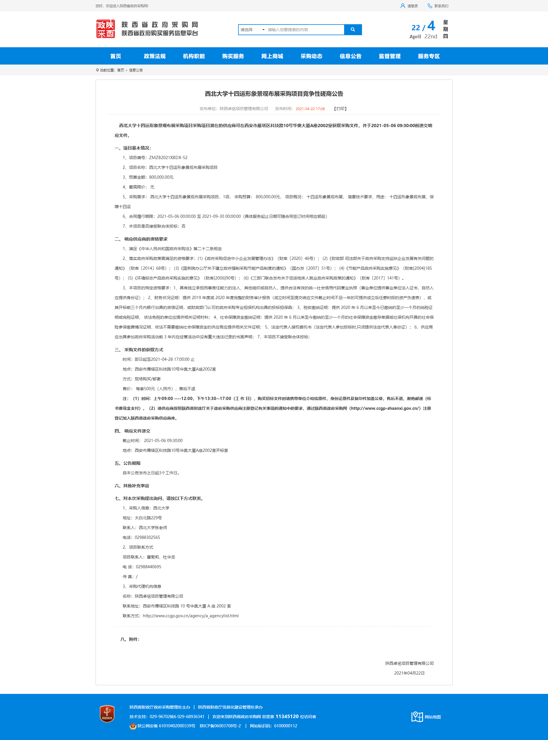 西北大学十四运形象景观布展采购项目竞争性磋商公告