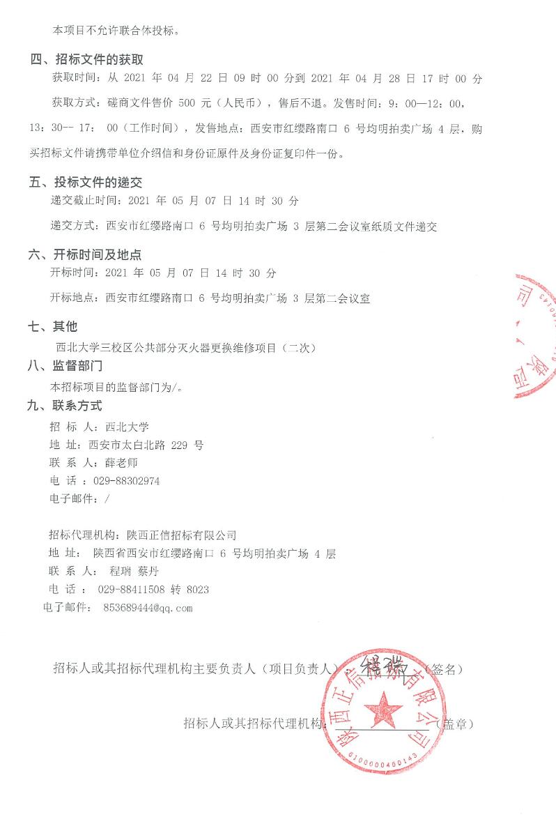 西北大学三校区公共部分灭火器更换维修项目(二次)竞争性磋商公告
