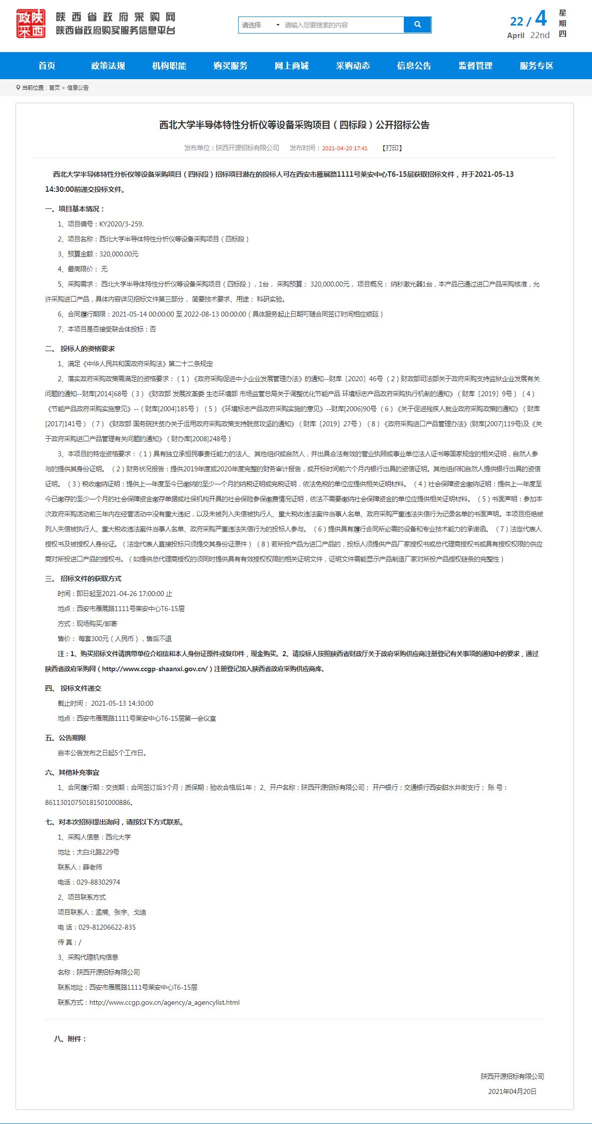 西北大学半导体特性分析仪等设备采购项目(四标段)公开招标公告