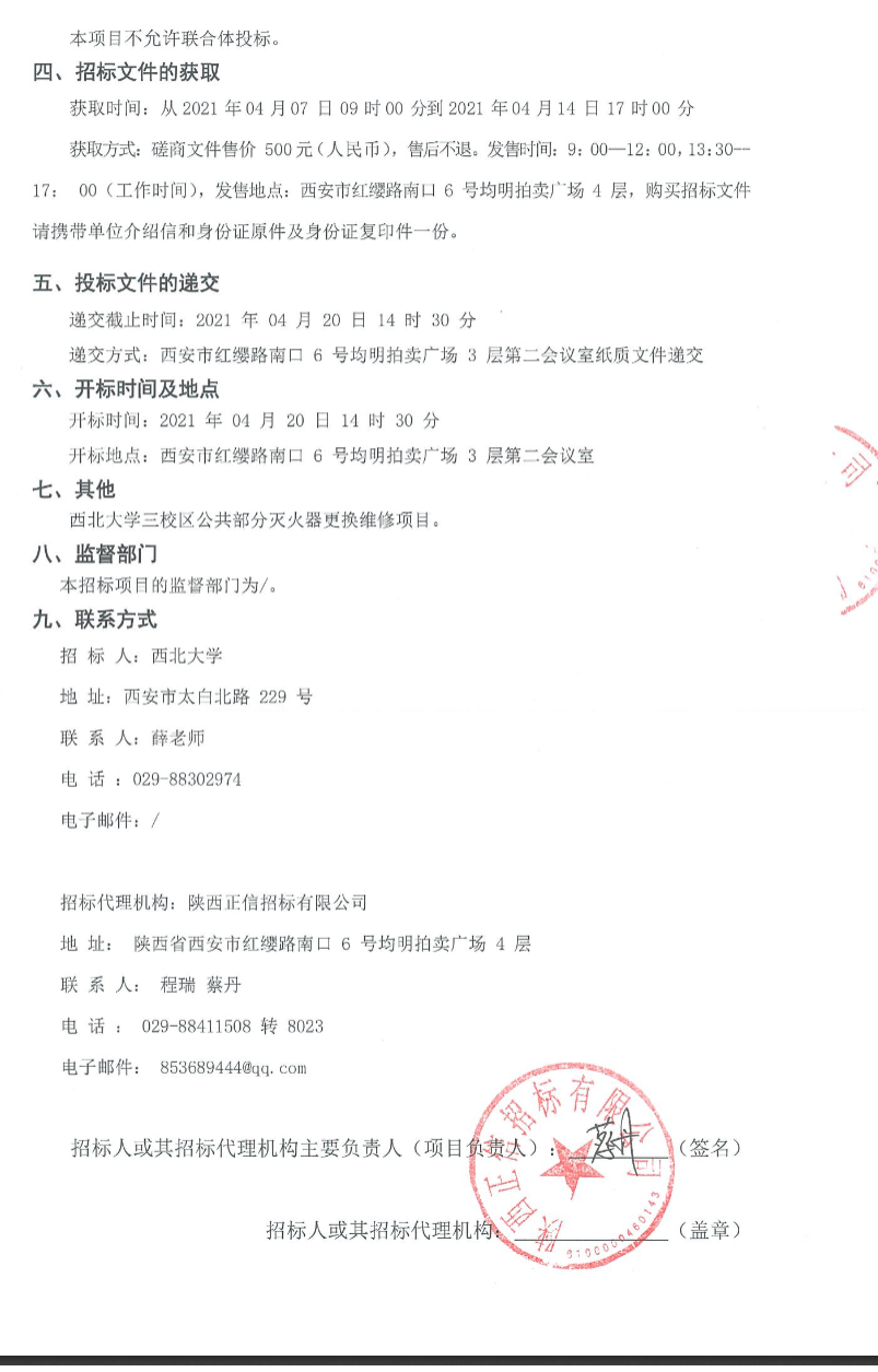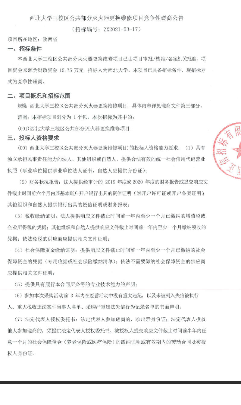 西北大学三校区公共部分灭火器更换维修项目竞争性磋商公告