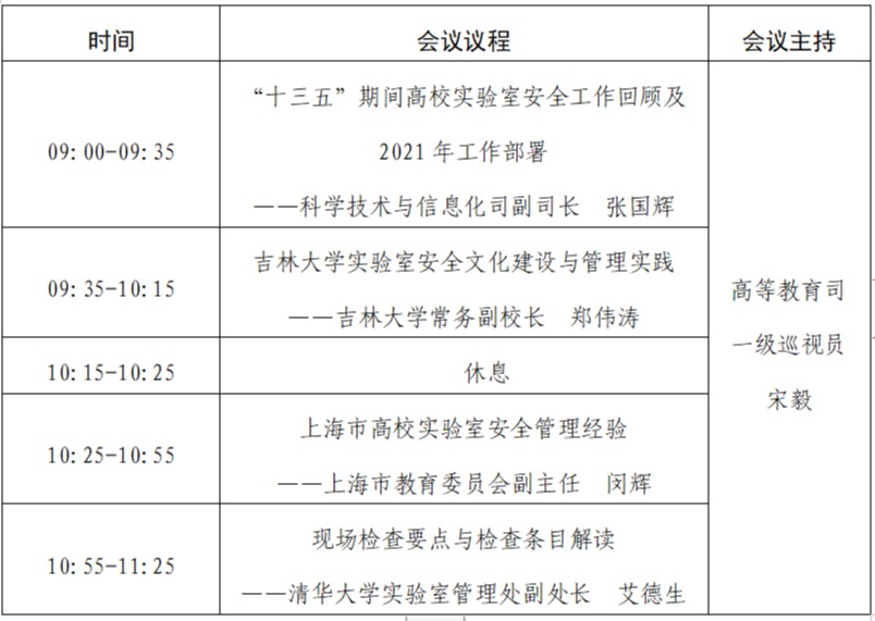 总结今年来高等学校实验室安全检查工作情况,部署2021年高等学校实验室安全现场检查相关工作,邀请专家就高校实验室安全管理实践及文化建设、检查要点等内容进行交流。