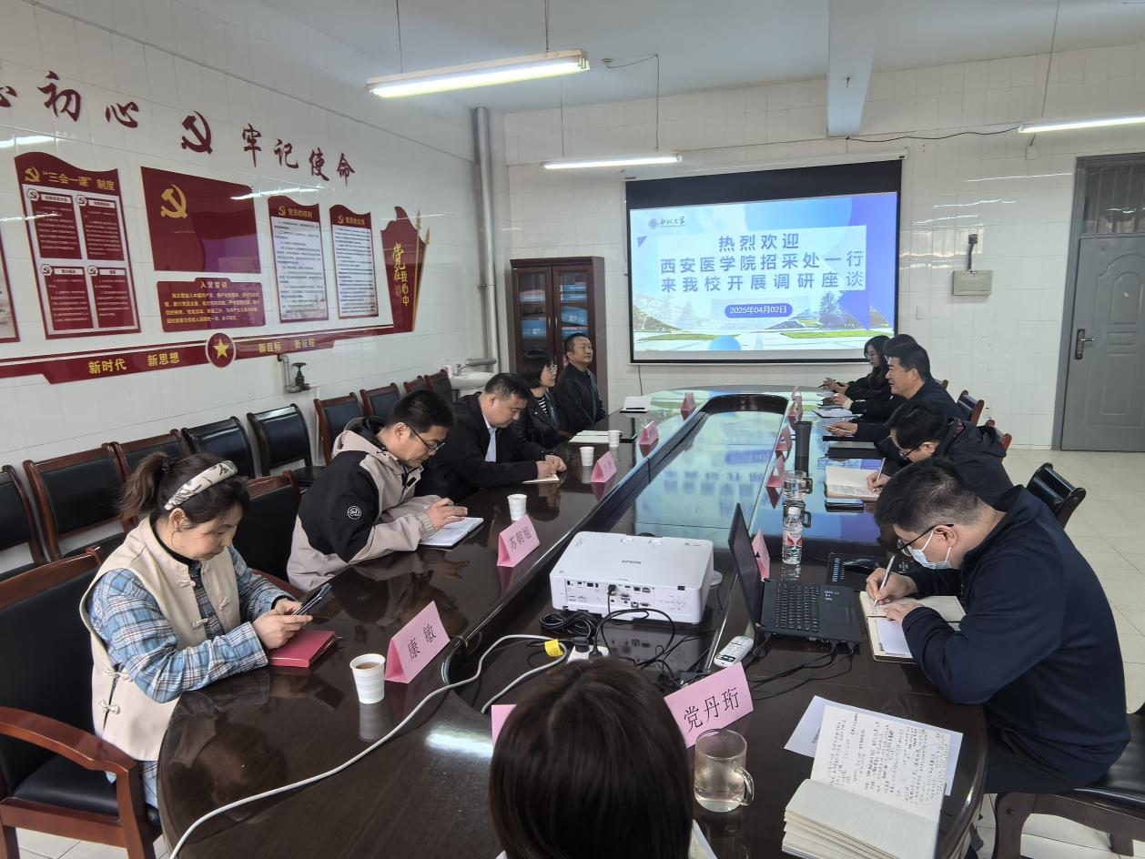 4月2日上午,西安医学院招采处处长唐俐玲一行5人来我校开展调研座谈,双方围绕“提高采招质效、促进高速发展”这一核心主题开展友好交流,采购与招标办全体人员参会。