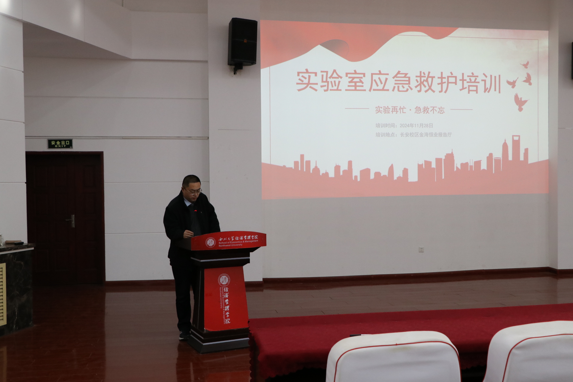实验室建设与管理处负责人首先结合学校实验室安全实际情况,向参训人员强调了实验室应急救护的重要性。他指出,学校实验室内危险源多、安全风险高,学习应急救护、处置突发情况,可能避免事故发生或挽救一条生命。