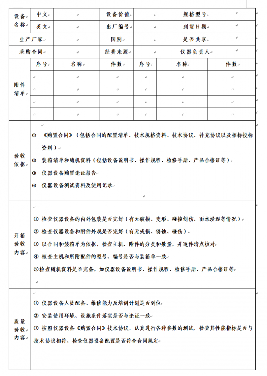 仪器设备是学校教学和科研工作的基础保障和必备条件。学校兼顾质量与效率,加强统筹和引导,明确大型仪器设备购置目的,对提高使用效益、减少资源浪费,做好资金规划、降低购置成本起到了积极作用。仪器设备验收作为采购流程的“最后一公里”,是衔接设备采购与使用的关键。学校优化验收流程,增设开箱验收环节,明确验收条目,把好仪器设备正常、高效运行的“第一道关口”。