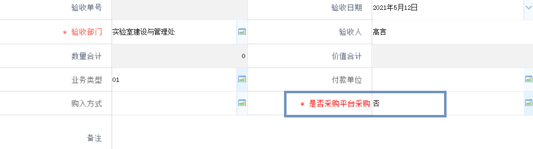 各单位资产管理员登录“久其系统”完成资产录入,选择“是否采购平台购买”---否,即可将设备信息推送至“网上办事大厅”进行审批。