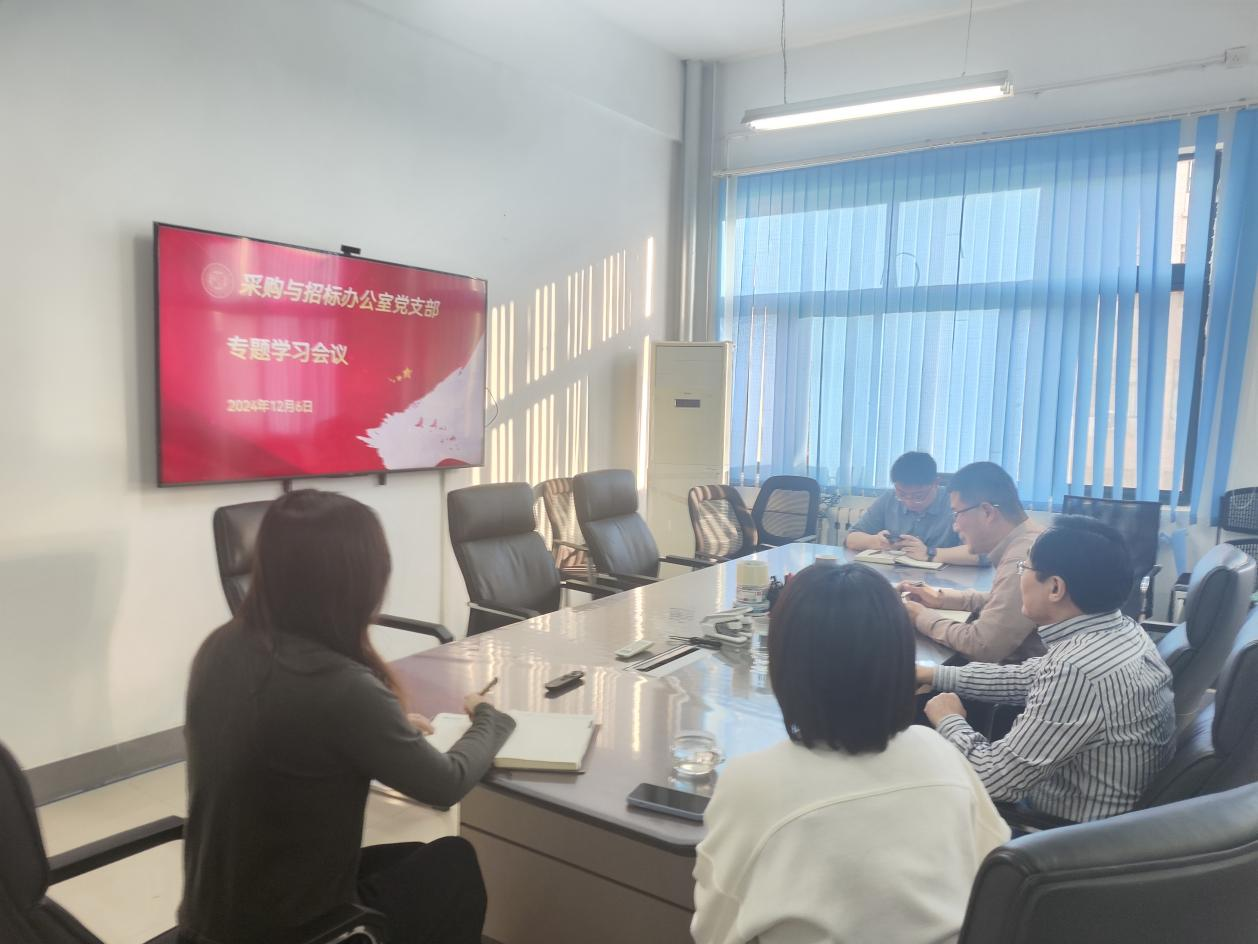 12月6日下午,采购与招标办党支部召开专题学习会议,深入学习领会了习近平总书记在福建和安徽两地考察时的重要讲话精神和习近平总书记主持召开中央政治局会议审议《关于二十届中央第三轮巡视情况的综合报告》的会议精神等,并围绕以党建引领采购招标工作提质增效开展交流讨论。会议由支部书记尹路主持,全体党员参加了会议。