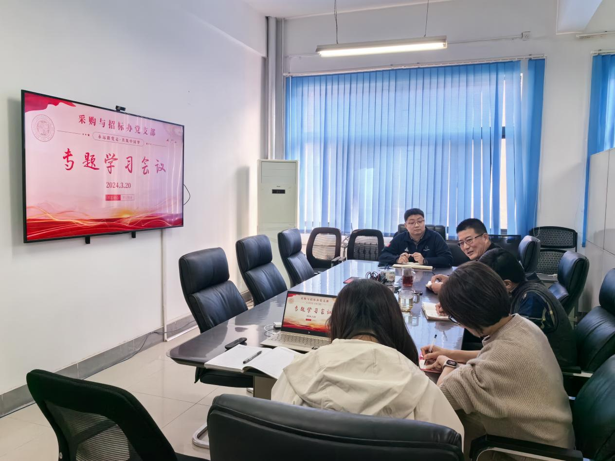 为落实学校关于深化干部作风能力建设安排部署,将作风能力提升工作落到实处, 2024年3月20日下午,采购与招标办党支部召开深化干部作风能力提升工作专题学习会议。会议由支部书记尹路主持,采购与招标办党支部全体人员参加会议。