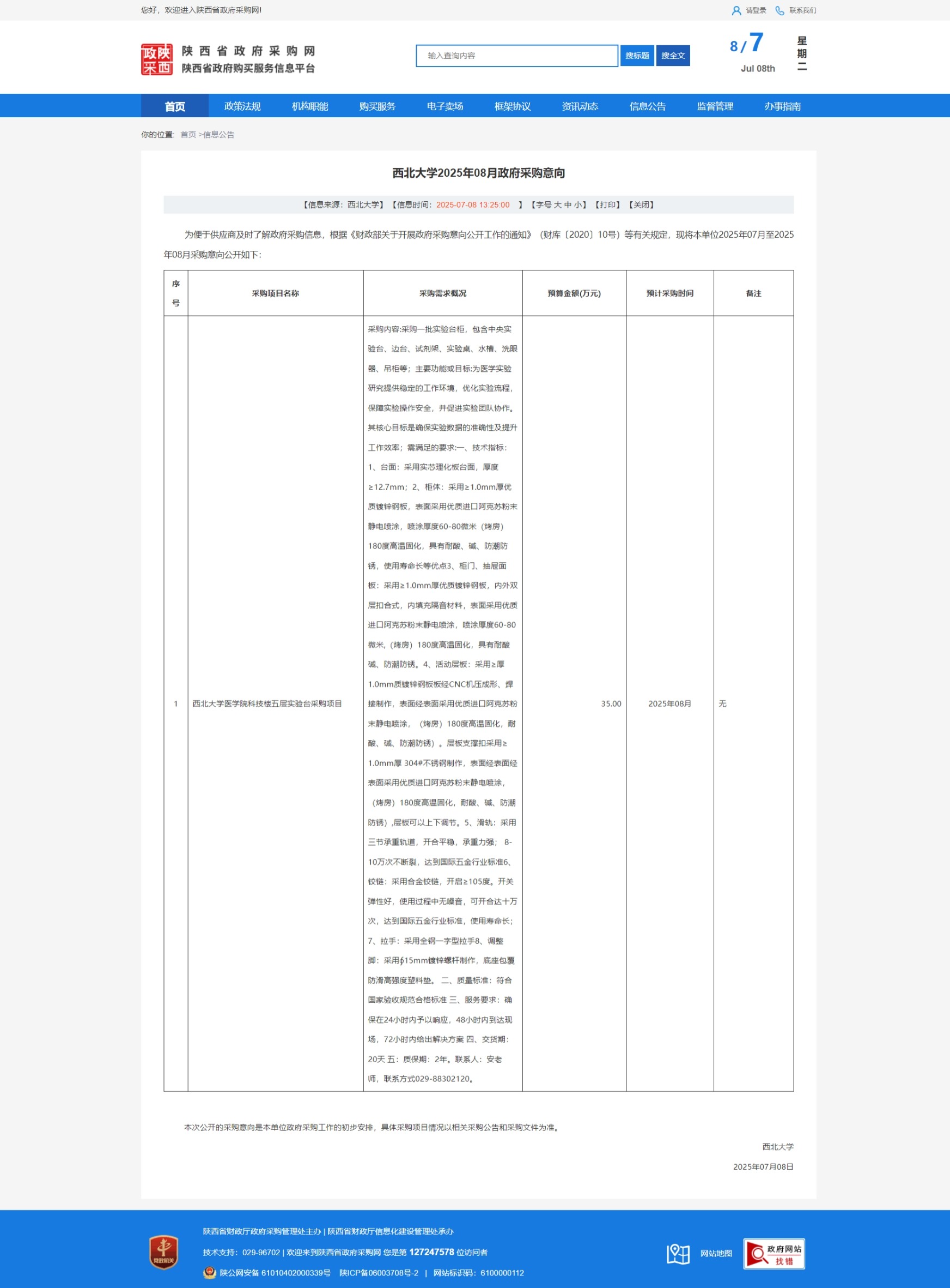 原公告链接:https://www.ccgp-shaanxi.gov.cn/freecms/site/shaanxi/ggxx/info/2025/8a69c68d97d2c4550197e87d6842455f.html?noticeType=59¬iceId=e4cb9cdd-5bbd-11f0-8063-08c0eb20c666