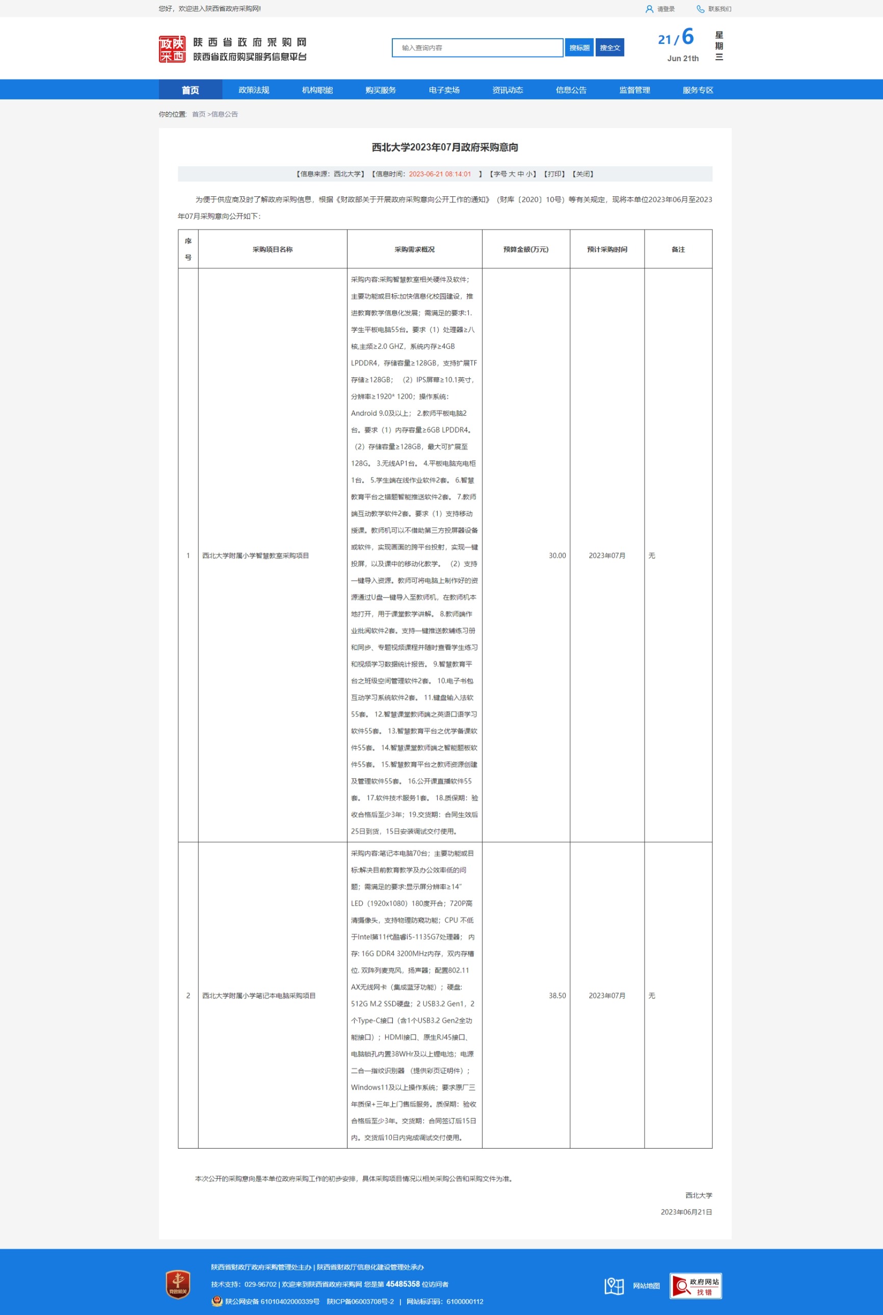 原公告链接:http://www.ccgp-shaanxi.gov.cn/freecms/site/shaanxi/ggxx/info/2023/8a69c41d88d6a1ff0188db49b6ae7e46.html?noticeType=59¬iceId=9959f749-0fc9-11ee-9a8e-08c0eb20c666