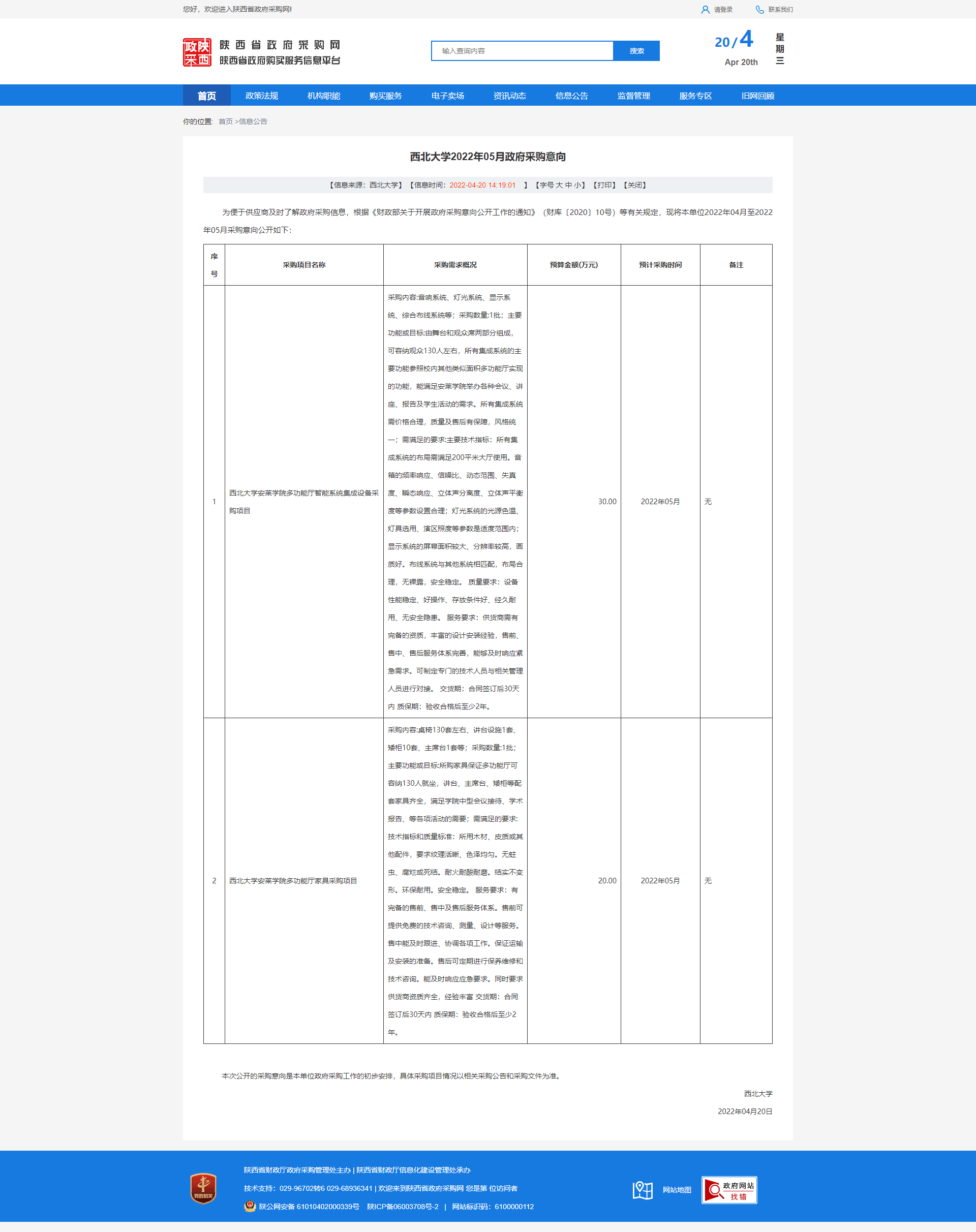 原公告链接:http://www.ccgp-shaanxi.gov.cn/freecms/site/shaanxi/ggxx/info/2022/8a69c6fa803f5d71018044f8ef4371e6.html?noticeType=59¬iceId=ec2f07d2-c071-11ec-9a8e-08c0eb20c666
