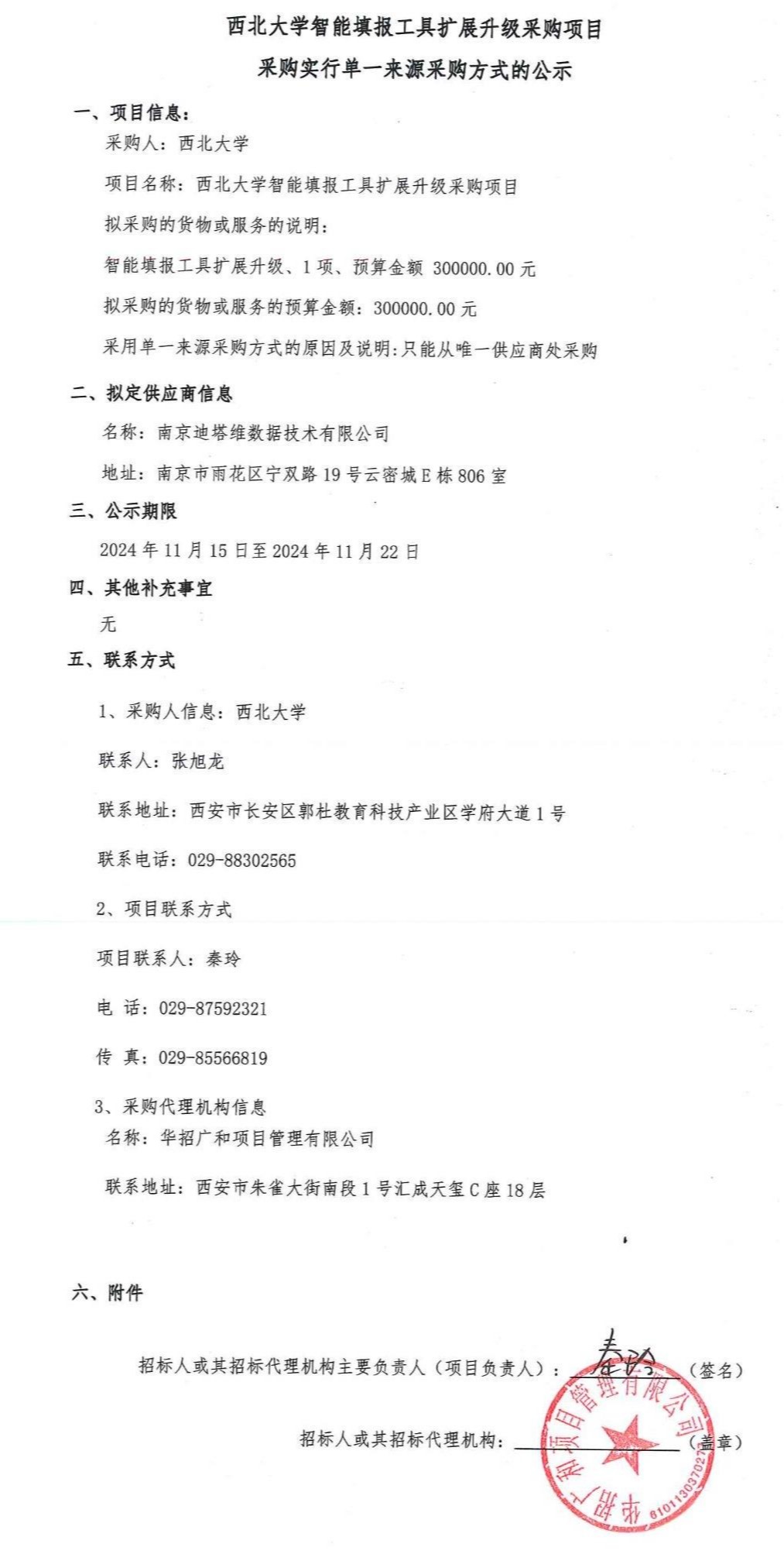 西北大学智能填报工具扩展升级采购项目采购实行单一来源采购方式的公示