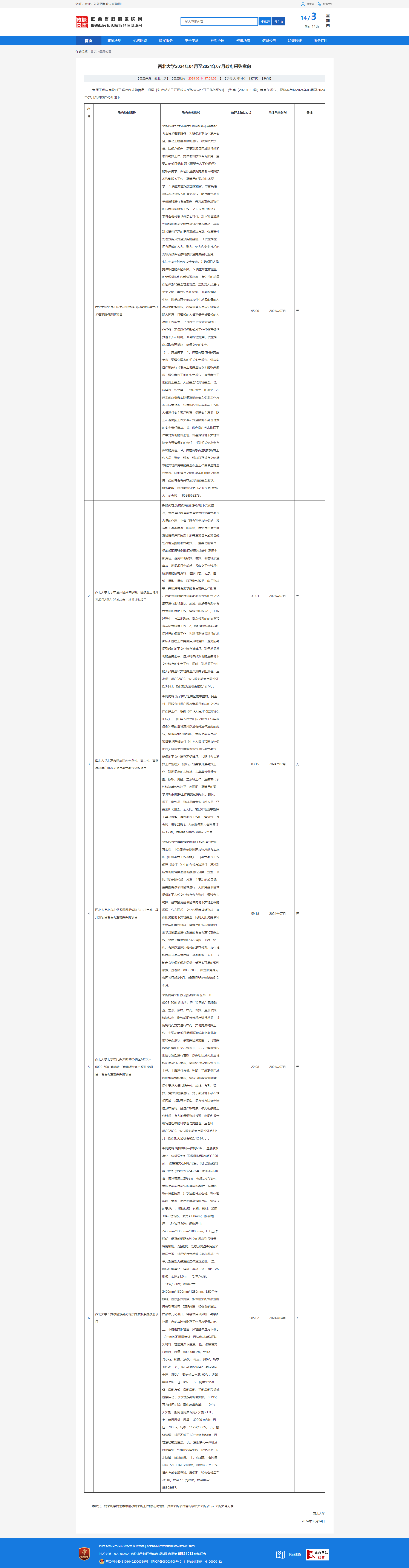 西北大学2024年04月至2024年07月政府采购意向