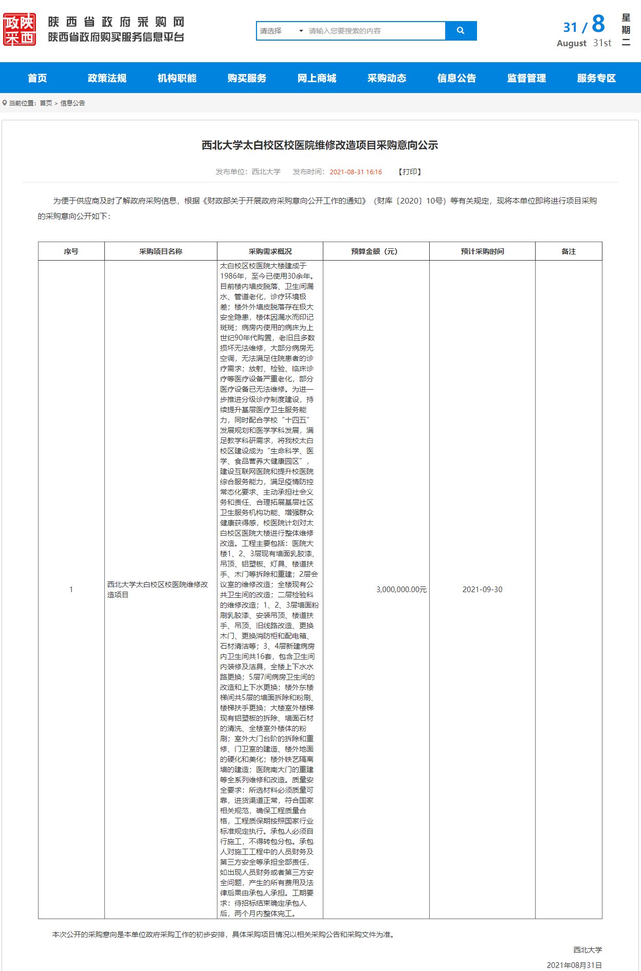 下一篇:西北大学2021年拟采购项目(第三批)采购意向公示