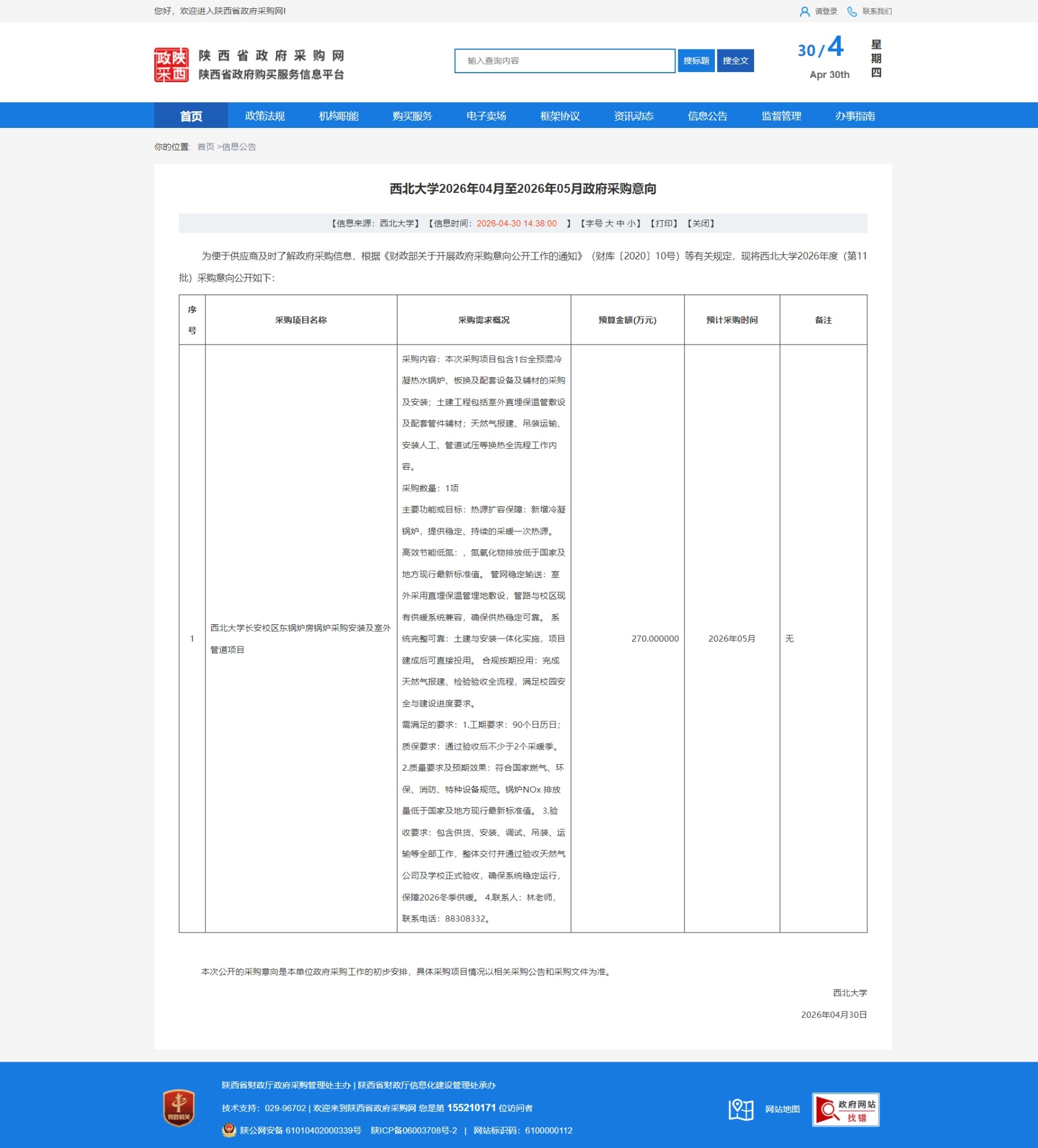 原公告链接:https://www.ccgp-shaanxi.gov.cn/freecms/site/shaanxi/ggxx/info/2026/8a69c1ce9dd9f811019ddcf827c0558a.html?noticeType=59¬iceId=a7f7bf26-4461-11f1-8063-08c0eb20c666