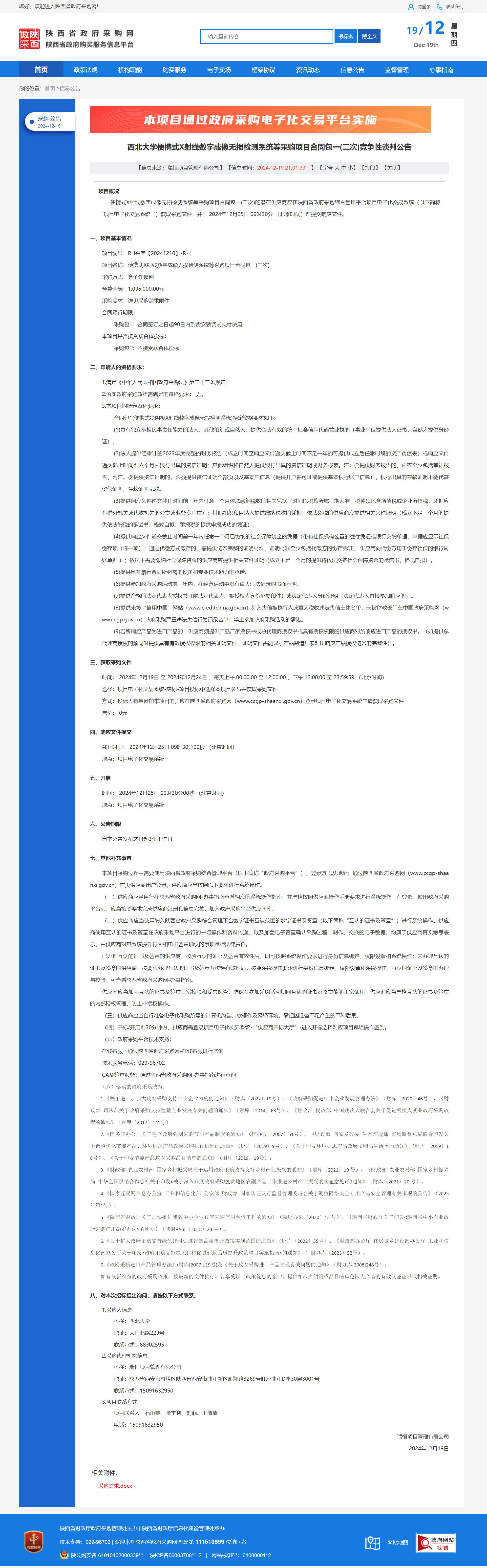 西北大学便携式X射线数字成像无损检测系统等采购项目合同包一(二次)竞争性谈判公告
