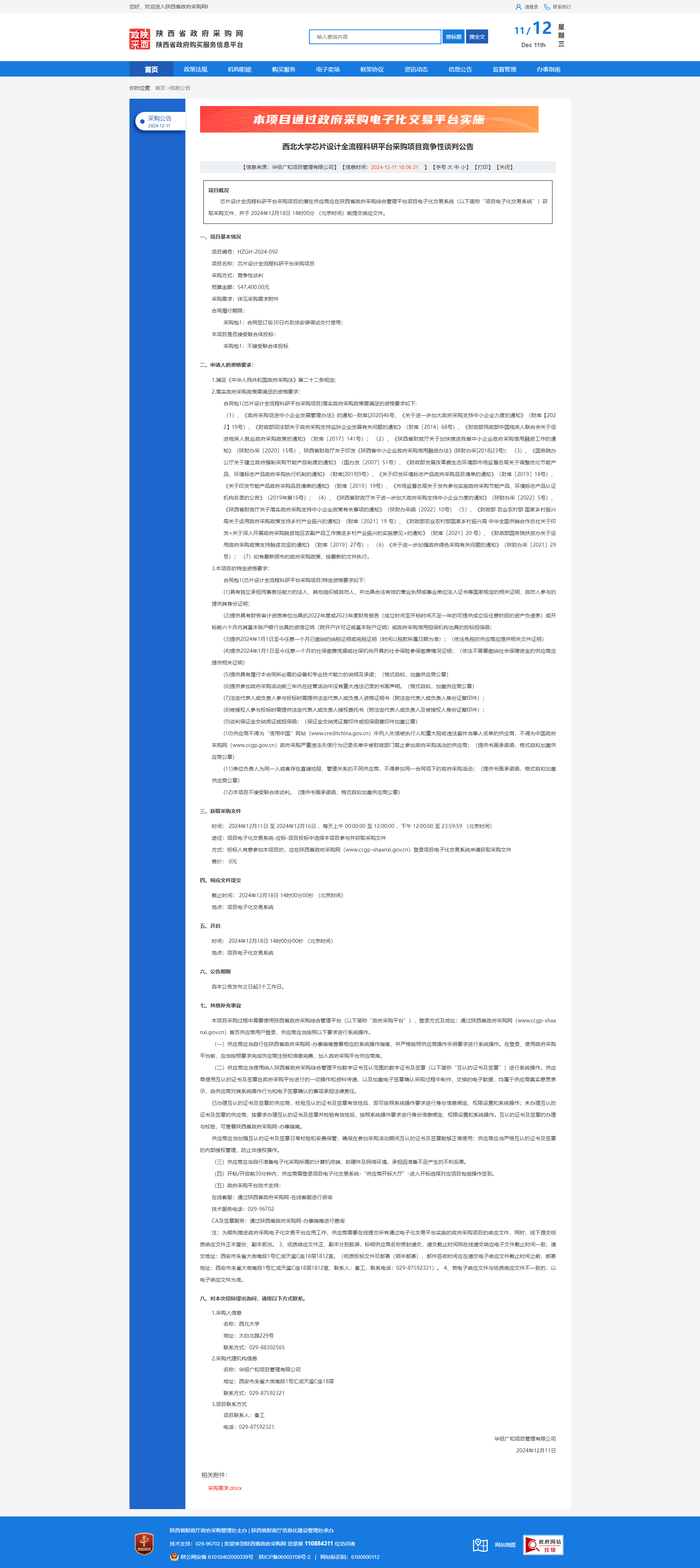 西北大学芯片设计全流程科研平台采购项目竞争性谈判公告