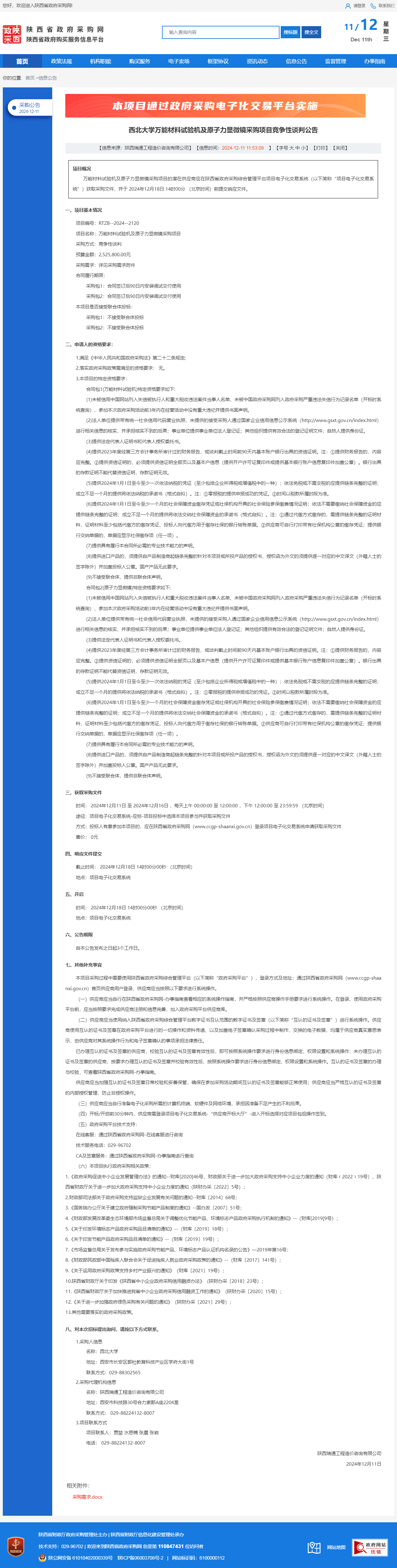 西北大学万能材料试验机及原子力显微镜采购项目竞争性谈判公告
