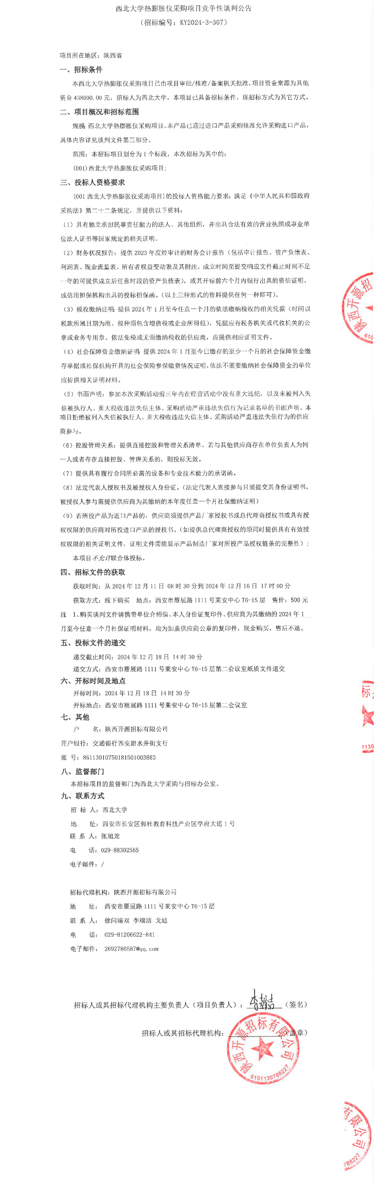 西北大学热膨胀仪采购项目竞争性谈判公告