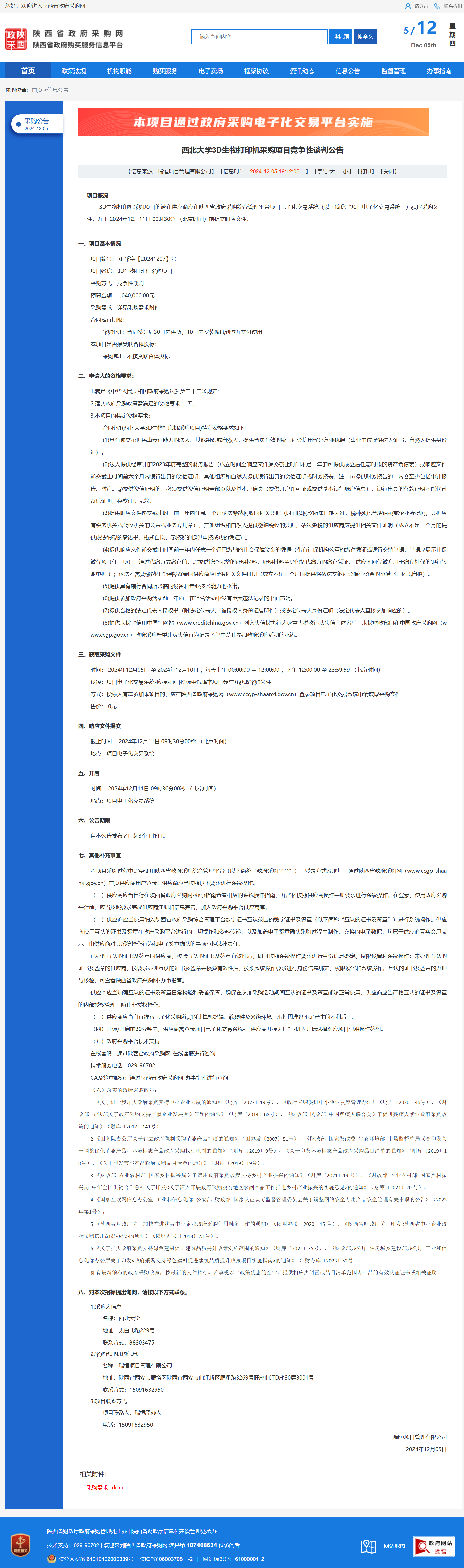 原公告链接:http://www.ccgp-shaanxi.gov.cn/freecms/site/shaanxi/ggxx/info/2024/8a69c95d921859f001939679368a3d50.html?noticeType=001013¬iceId=5fb3a087-b2fb-11ef-8063-08c0eb20c666