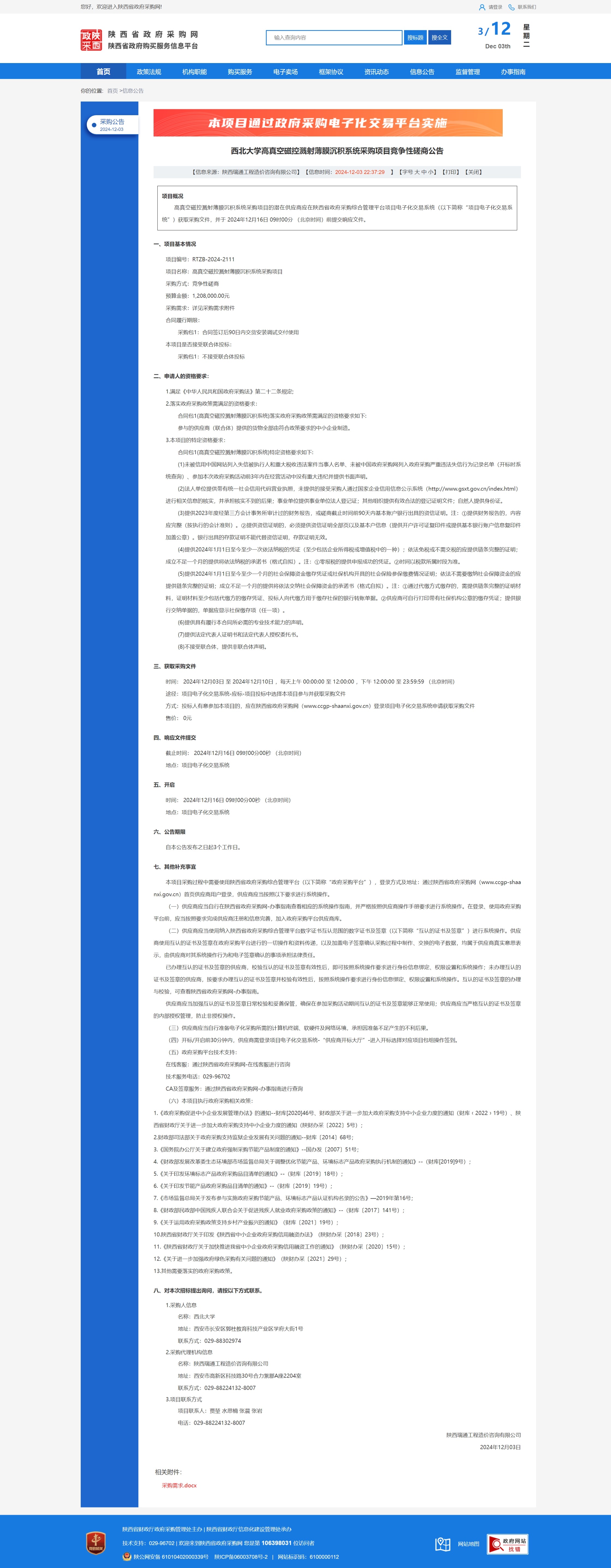 原公告链接:https://www.ccgp-shaanxi.gov.cn/freecms/site/shaanxi/ggxx/info/2024/8a69c95d921859f001938cef122366bb.html?noticeType=001016¬iceId=ba4c696e-b185-11ef-8063-08c0eb20c666