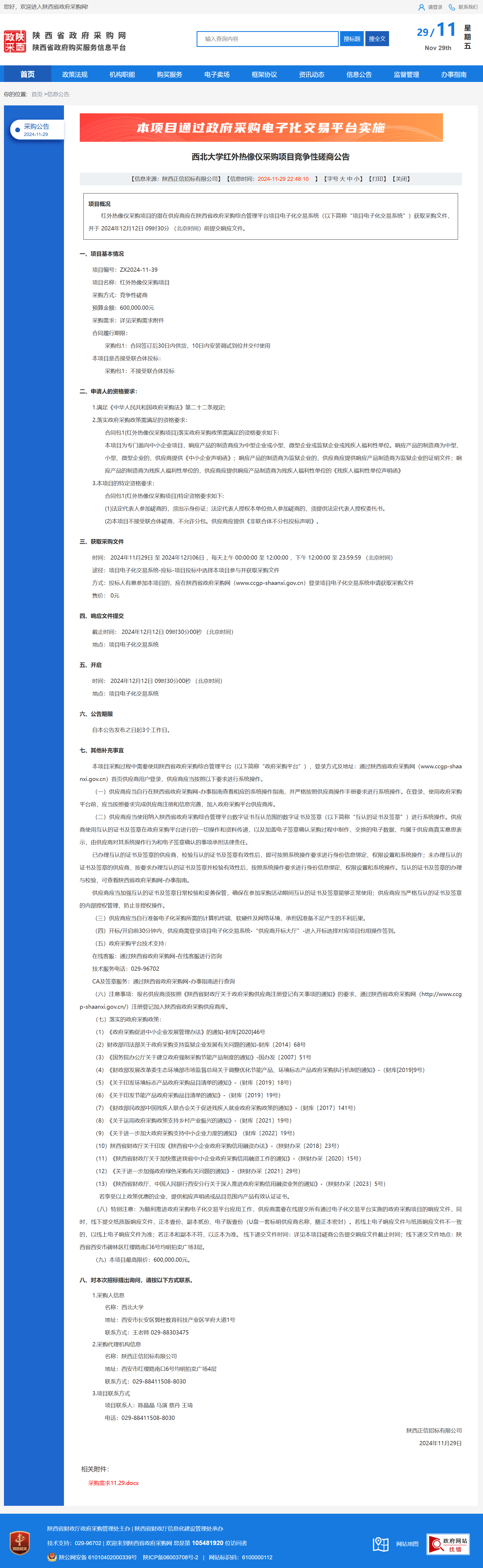 原公告链接:http://www.ccgp-shaanxi.gov.cn/freecms/site/shaanxi/ggxx/info/2024/8a69c25192185737019378563f514743.html?noticeType=001016¬iceId=8c82e43c-ae62-11ef-8063-08c0eb20c666