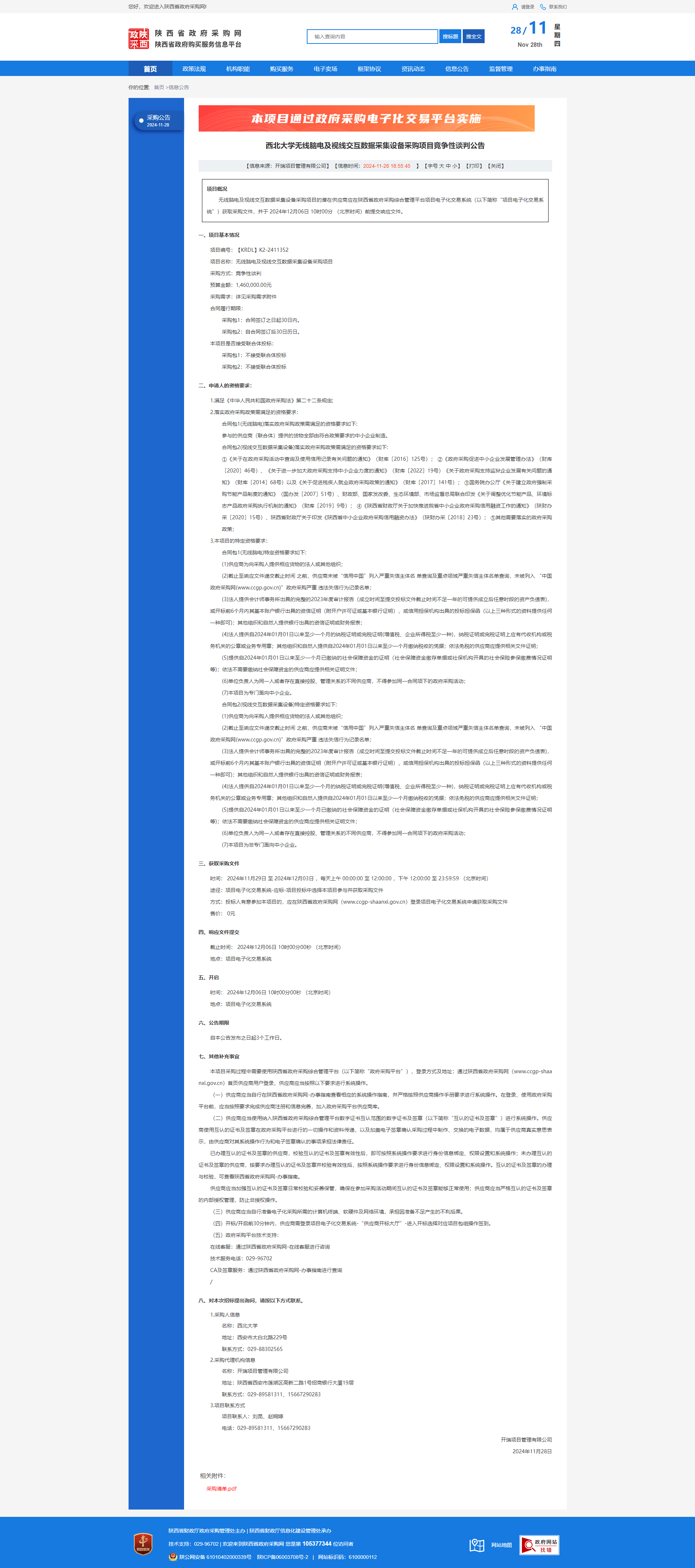 西北大学无线脑电及视线交互数据采集设备采购项目竞争性谈判公告