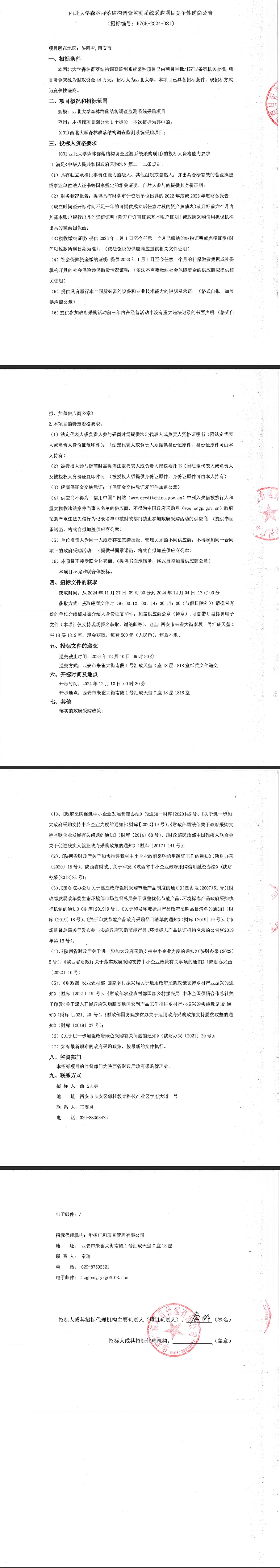 西北大学森林群落结构调查监测系统采购项目竞争性磋商公告