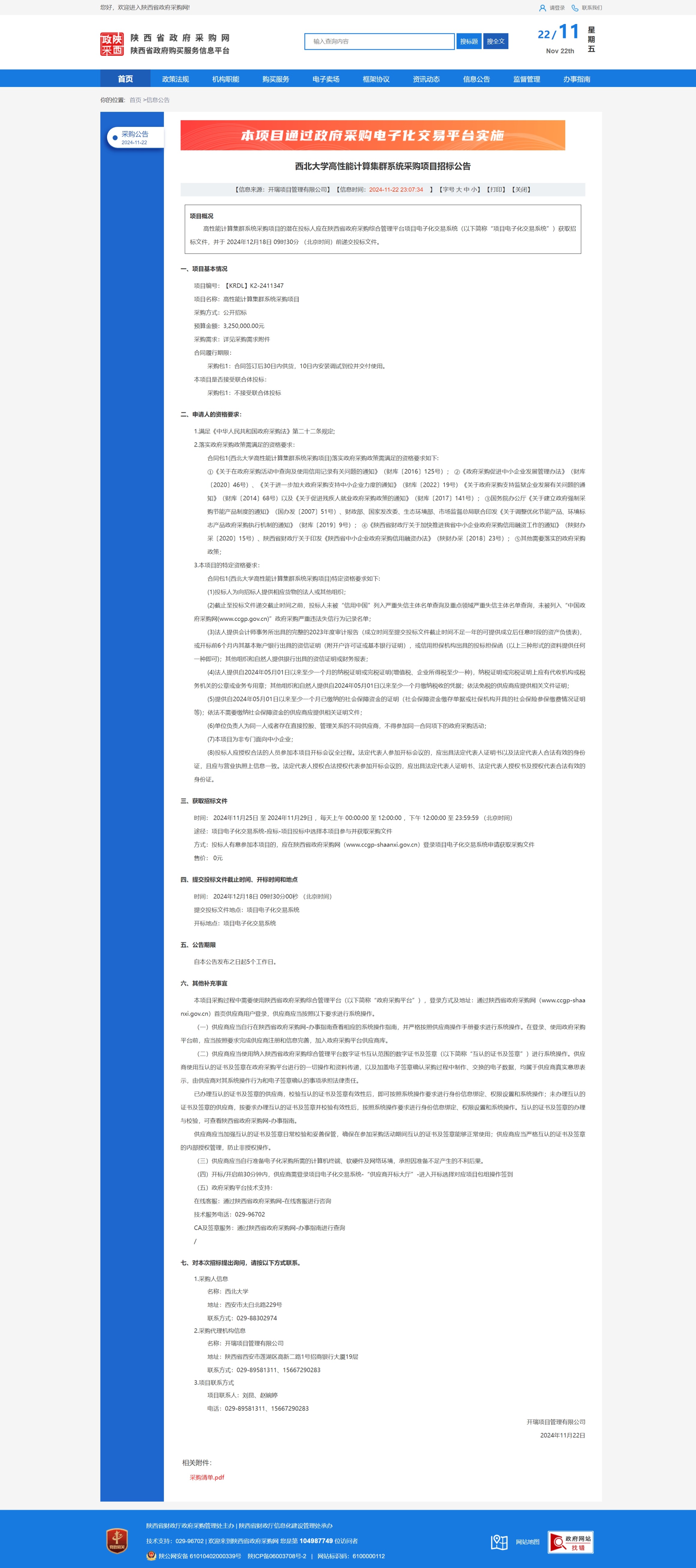 原公告链接:https://www.ccgp-shaanxi.gov.cn/freecms/site/shaanxi/ggxx/info/2024/8a69c5a59218576d0193545f6de719d0.html?noticeType=001011¬iceId=1645c115-a8e5-11ef-8063-08c0eb20c666