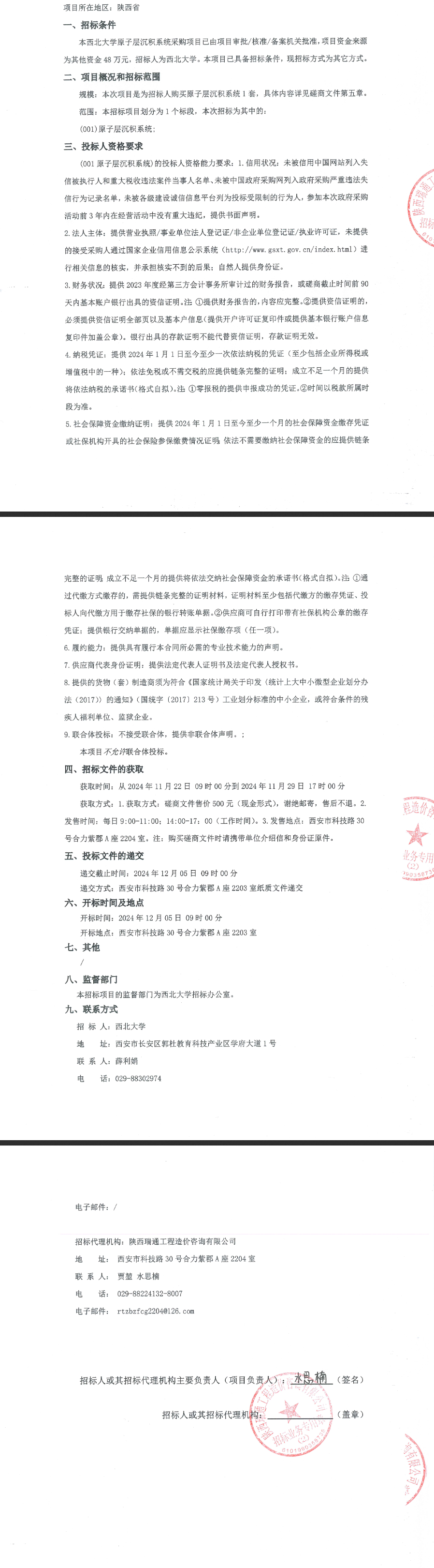 西北大学原子层沉积系统采购项目竞争性磋商公告
