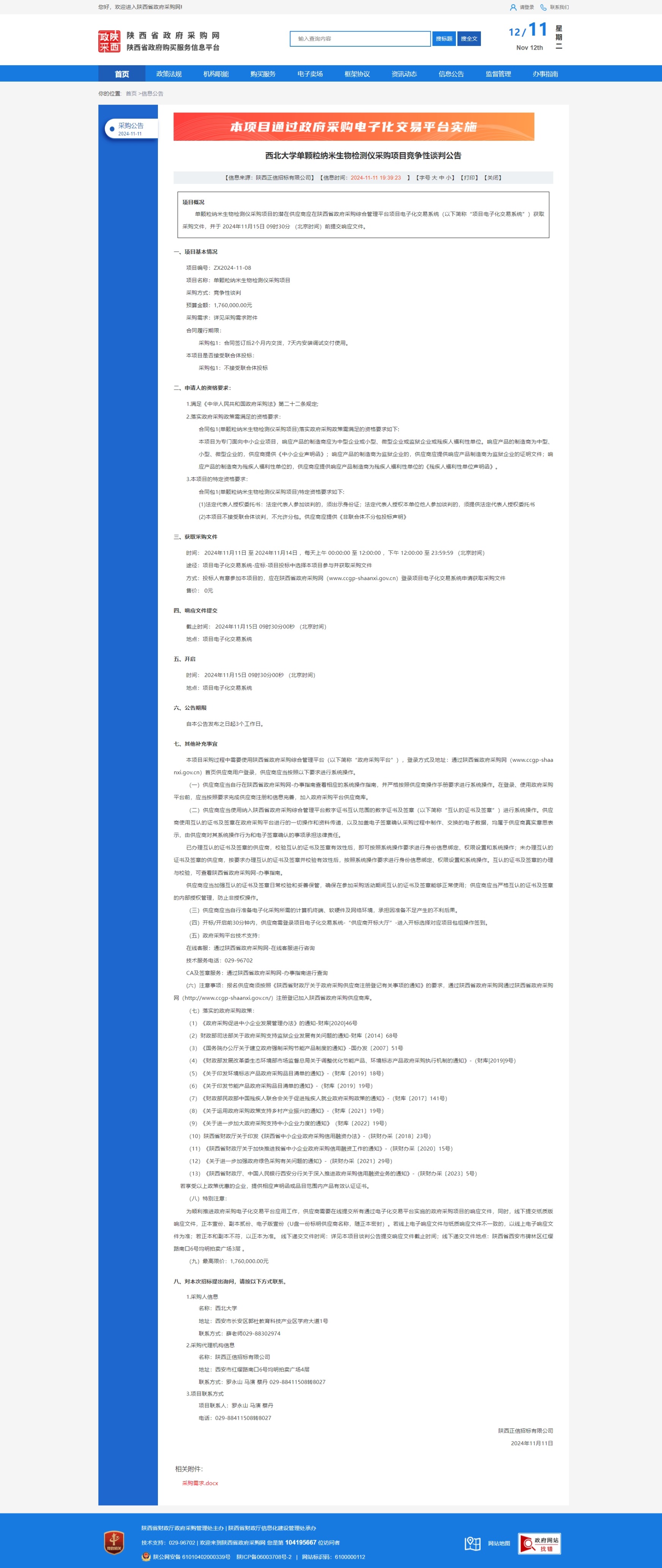 原公告链接:https://www.ccgp-shaanxi.gov.cn/freecms/site/shaanxi/ggxx/info/2024/8a69c5a59218576d01931ae5a92607ad.html?noticeType=001013¬iceId=29519790-a023-11ef-8063-08c0eb20c666