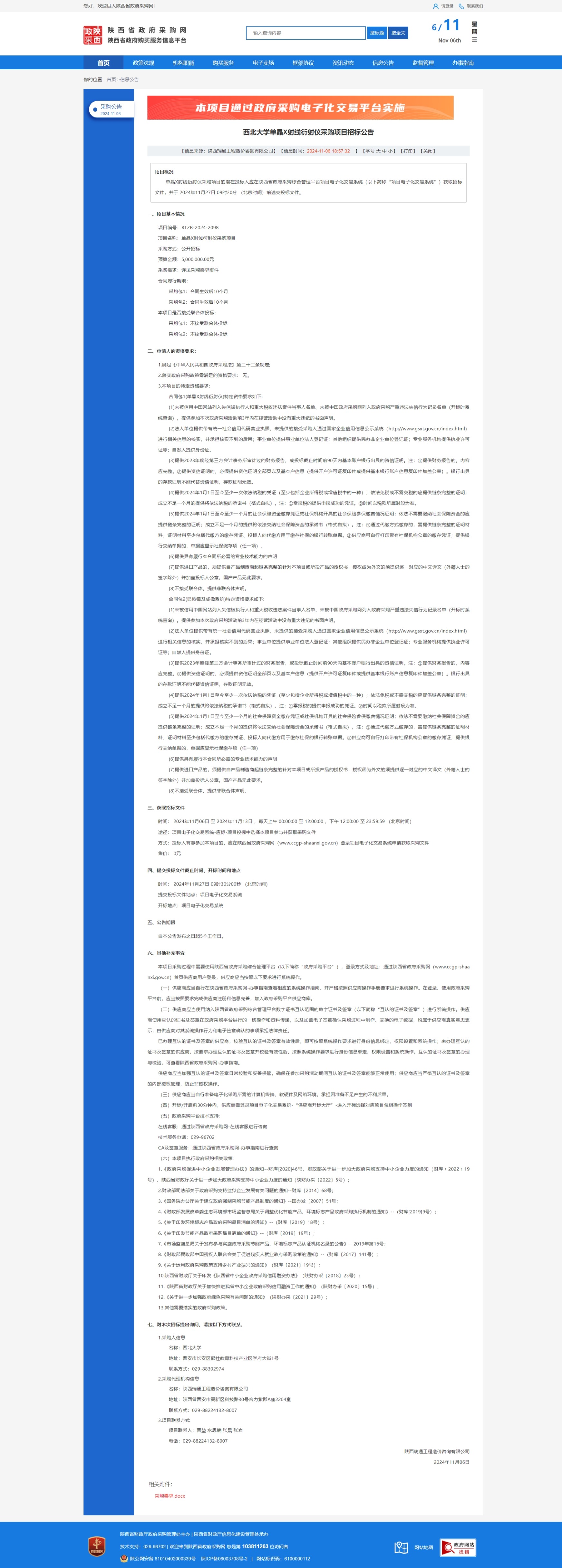 原公告链接:https://www.ccgp-shaanxi.gov.cn/freecms/site/shaanxi/ggxx/info/2024/8a69c44e9218572b0193011b33fc605b.html?noticeType=001011¬iceId=79ed41b9-9c2f-11ef-8063-08c0eb20c666
