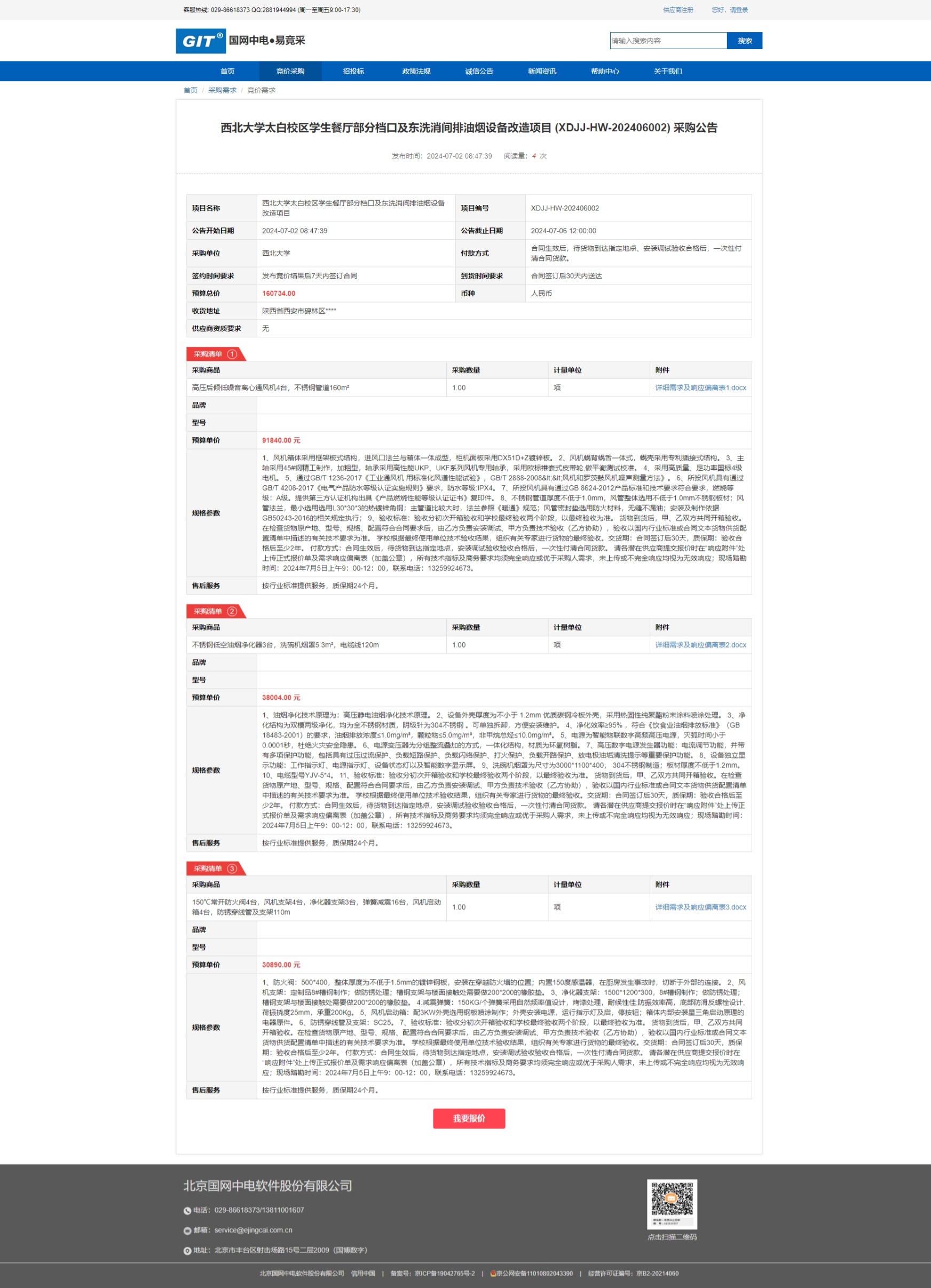 西北大学太白校区学生餐厅部分档口及东洗消间排油烟设备改造项目 (XDJJ-HW-202406002) 竞价采购公告