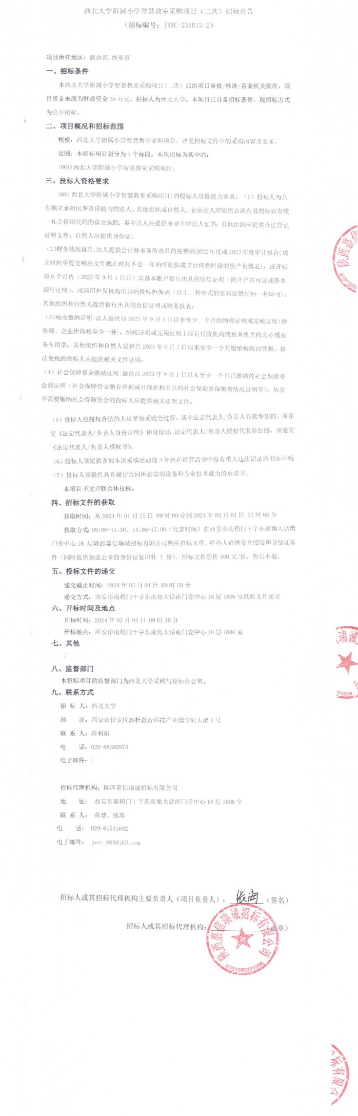 西北大学附属小学智慧教室采购项目(二次)招标公告
