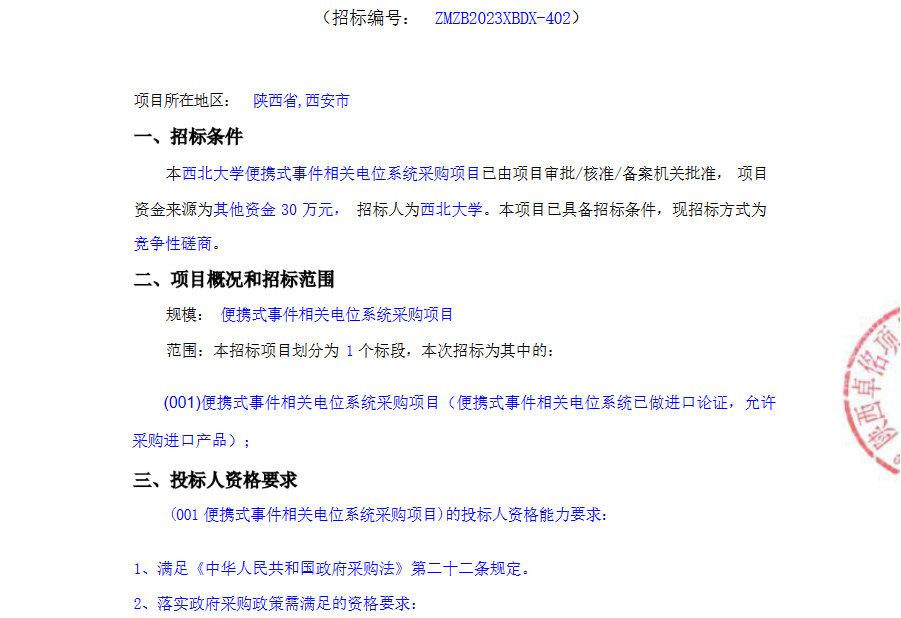 西北大学便携式事件相关电位系统采购项目竞争性磋商公告