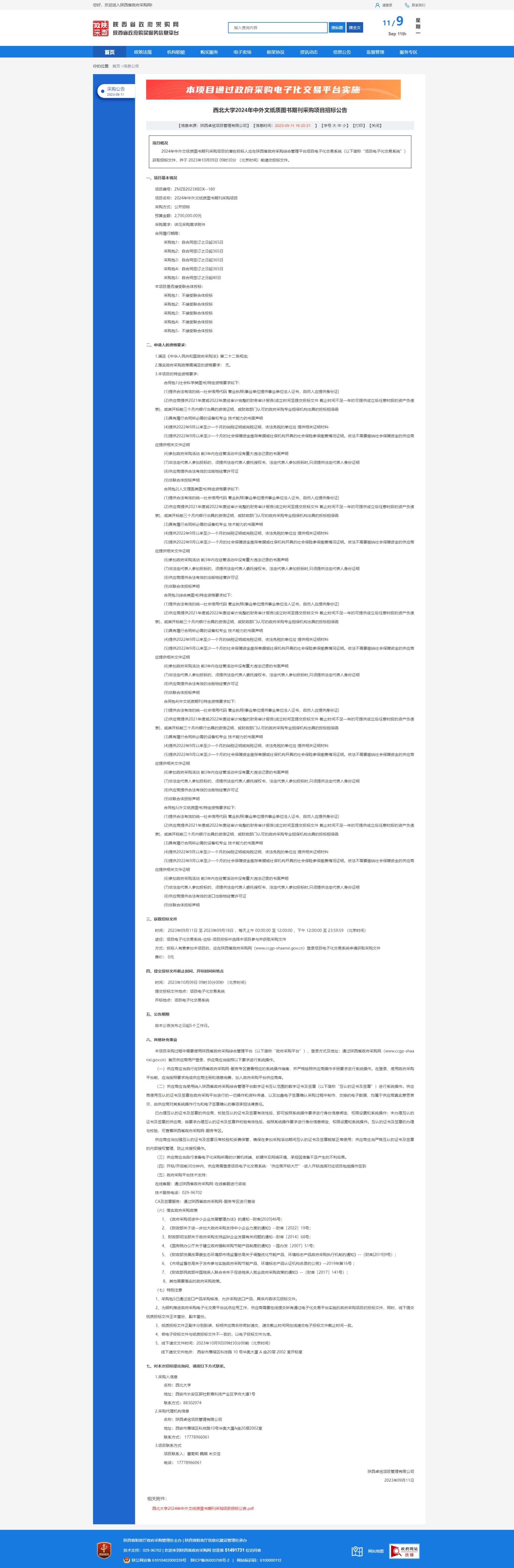 原公告链接:http://www.ccgp-shaanxi.gov.cn/freecms/site/shaanxi/ggxx/info/2023/8a69c0c08a23272a018a82dd42b44ff5.html?noticeType=001011¬iceId=45649849-507d-11ee-9a8e-08c0eb20c666