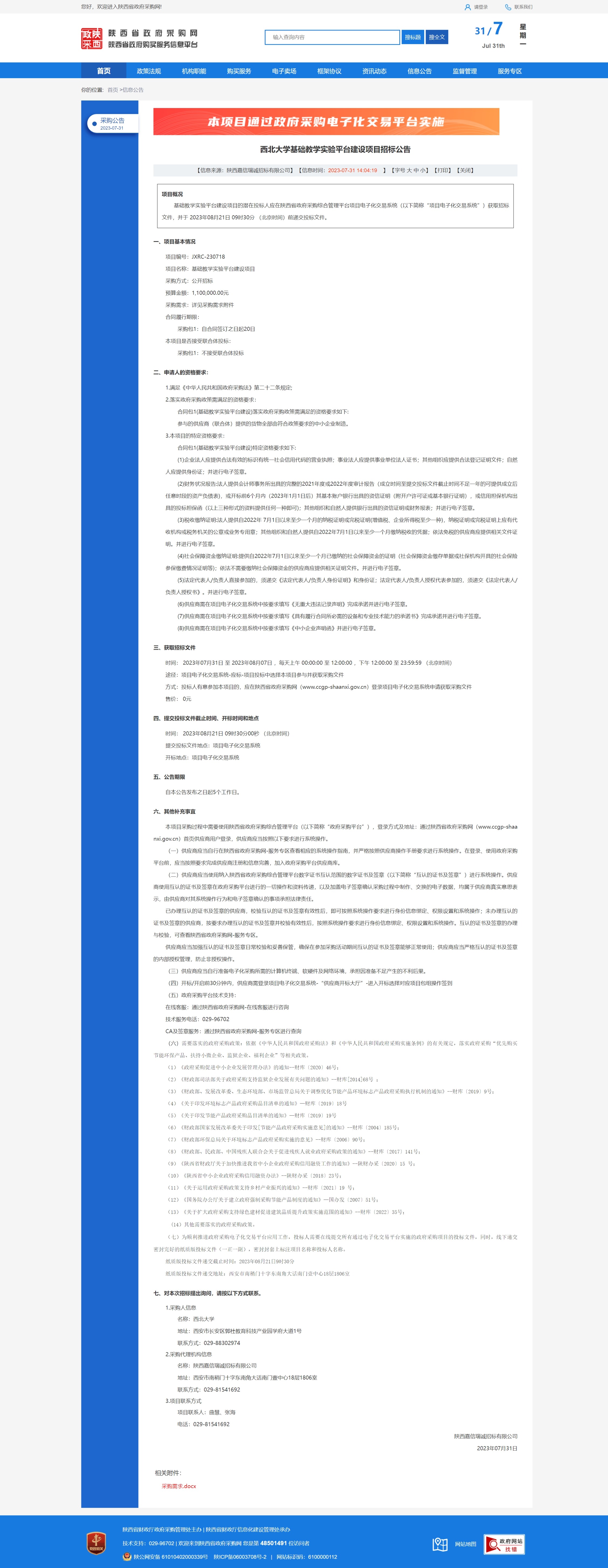 原公告链接:http://www.ccgp-shaanxi.gov.cn/freecms/site/shaanxi/ggxx/info/2023/8a69c0be899a71f00189a9e854200a61.html?noticeType=001011¬iceId=3bdd4942-2f69-11ee-9a8e-08c0eb20c666