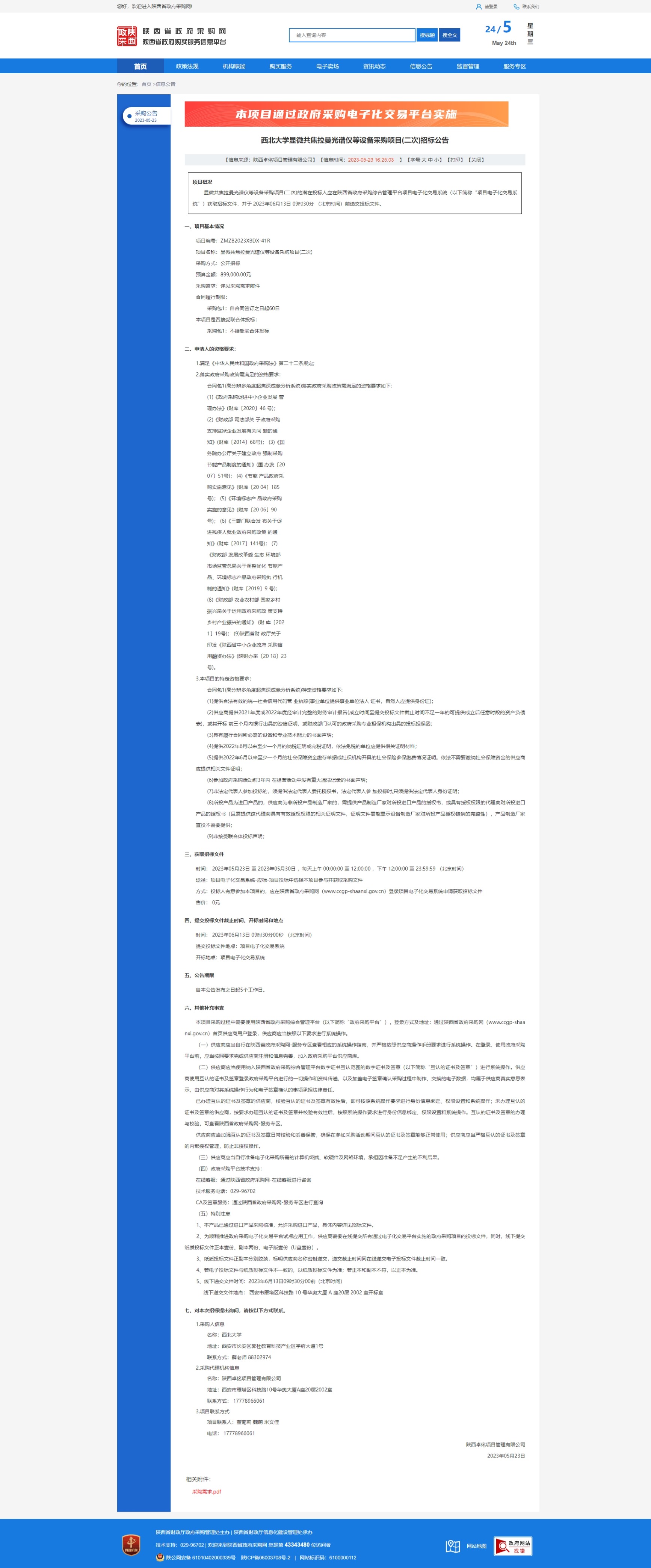 原公告链接:http://www.ccgp-shaanxi.gov.cn/freecms/site/shaanxi/ggxx/info/2023/8a69c08788448619018847a28ea75e82.html?noticeType=001011¬iceId=5655d7d7-f944-11ed-9a8e-08c0eb20c666