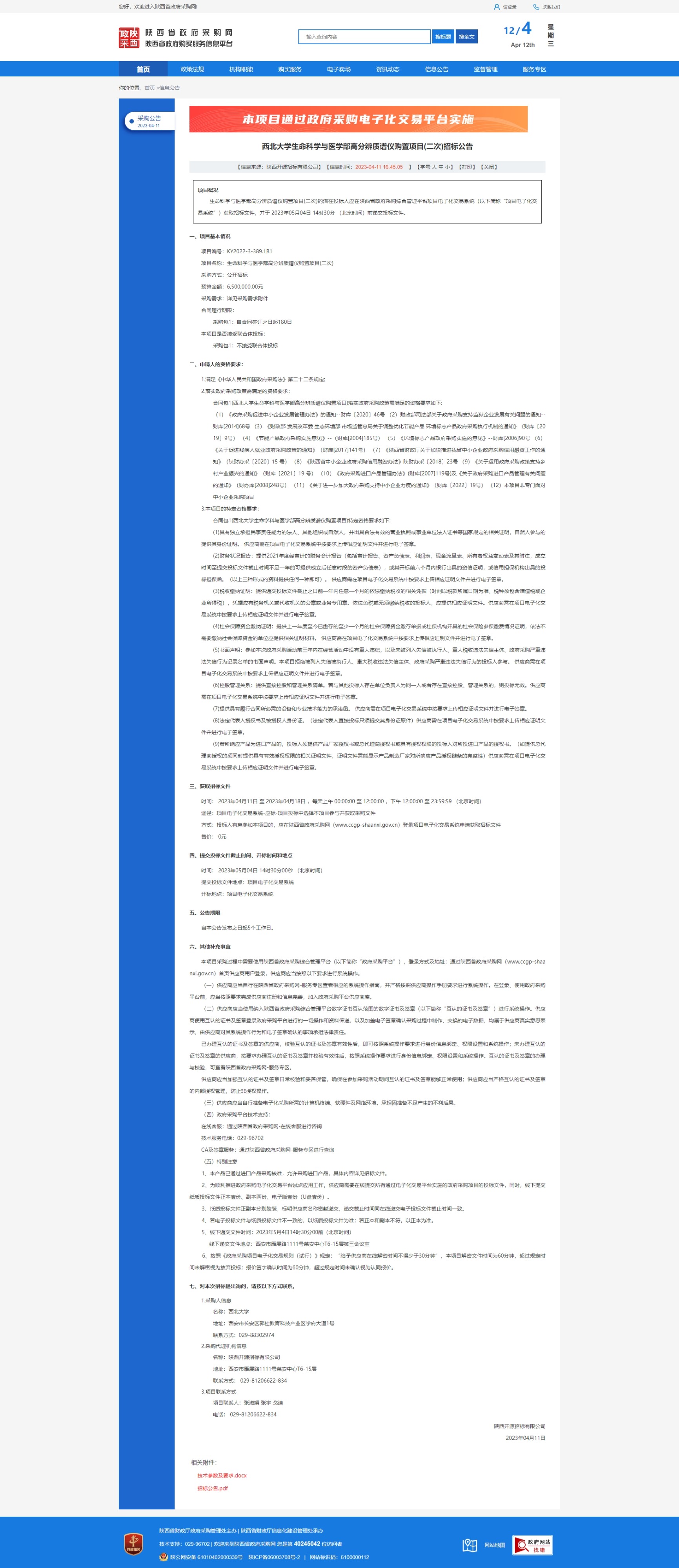 原公告链接:http://www.ccgp-shaanxi.gov.cn/freecms/site/shaanxi/ggxx/info/2023/8a69c1d08729508201876f61b85a088e.html?noticeType=001011¬iceId=199c1a02-d846-11ed-9a8e-08c0eb20c666