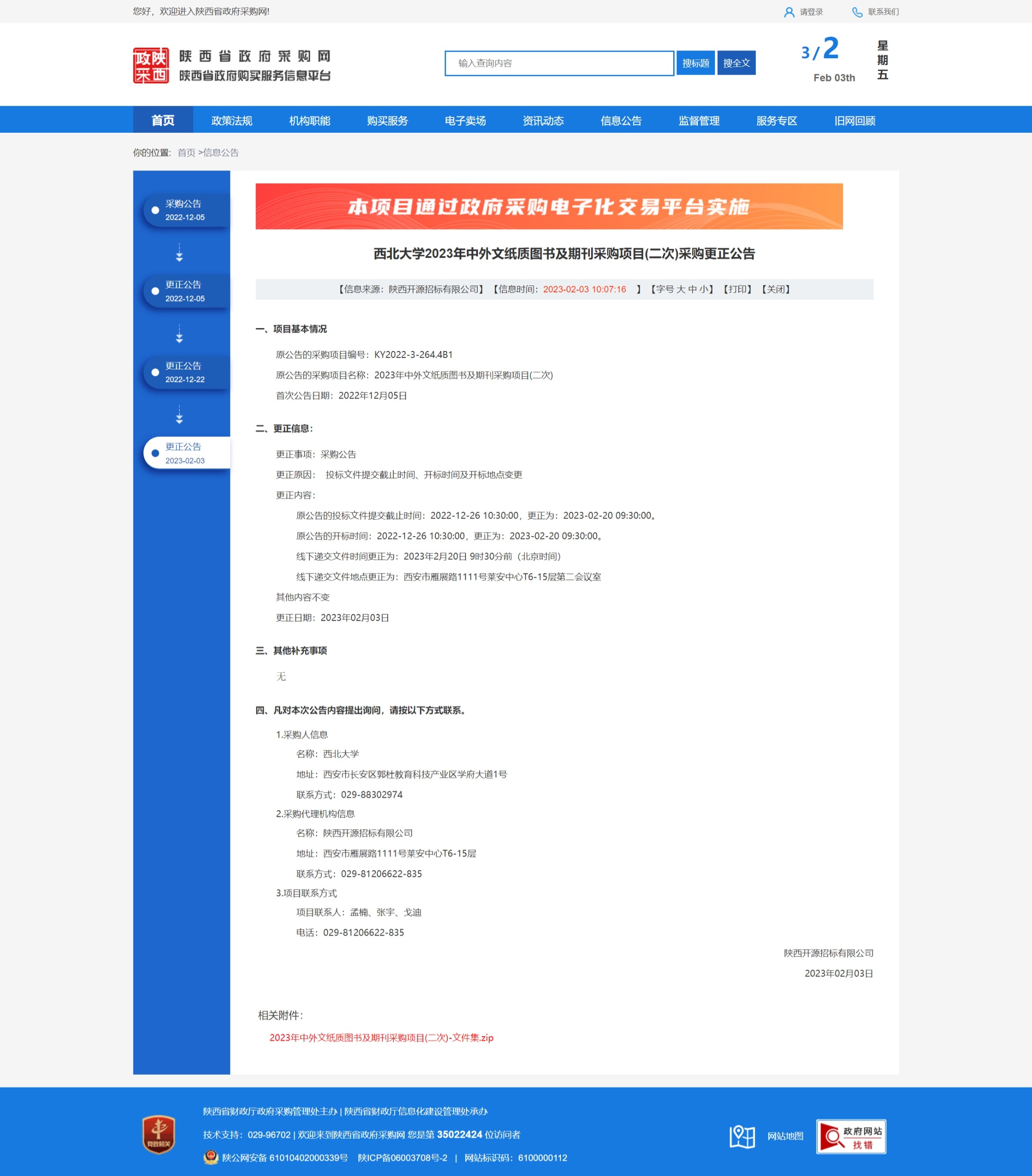 原公告链接:http://www.ccgp-shaanxi.gov.cn/freecms/site/shaanxi/ggxx/info/2023/8a69c2e7858176f101861168101b5eb5.html?noticeType=001031¬iceId=49f867d9-a368-11ed-9a8e-08c0eb20c666
