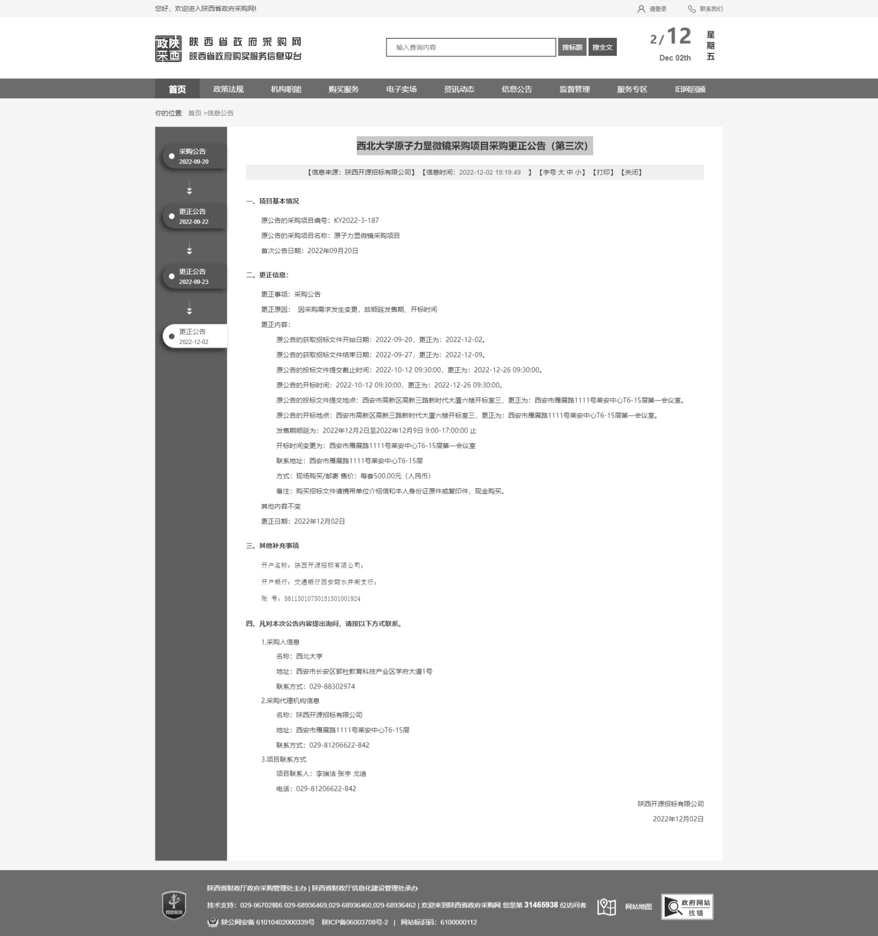 原公告链接:http://www.ccgp-shaanxi.gov.cn/freecms/site/shaanxi/ggxx/info/2022/8a69c4c88405ac2f0184d27d406137d7.html?noticeType=001031¬iceId=e90e6533-7233-11ed-9a8e-08c0eb20c666