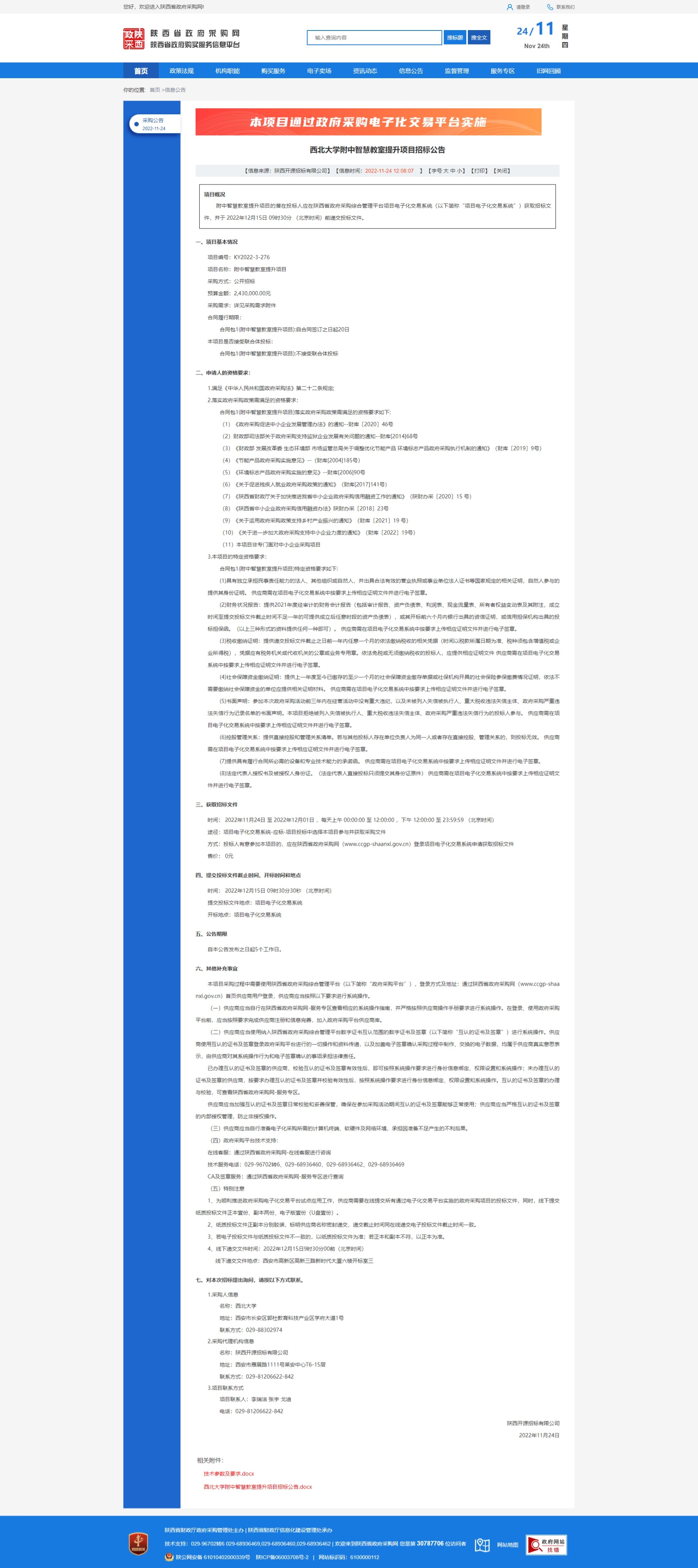 原公告链接:http://www.ccgp-shaanxi.gov.cn/freecms/site/shaanxi/ggxx/info/2022/8a69c4c88405ac2f0184a7b6f03b1520.html?noticeType=001011¬iceId=4274012b-6bae-11ed-9a8e-08c0eb20c666