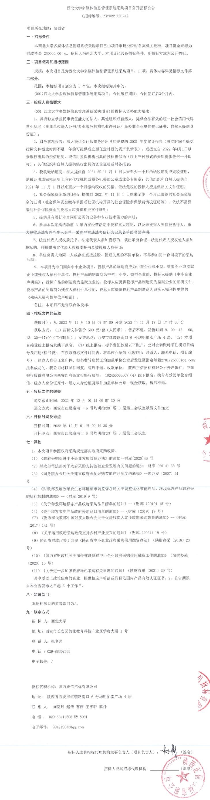 西北大学多媒体信息管理系统采购项目公开招标公告
