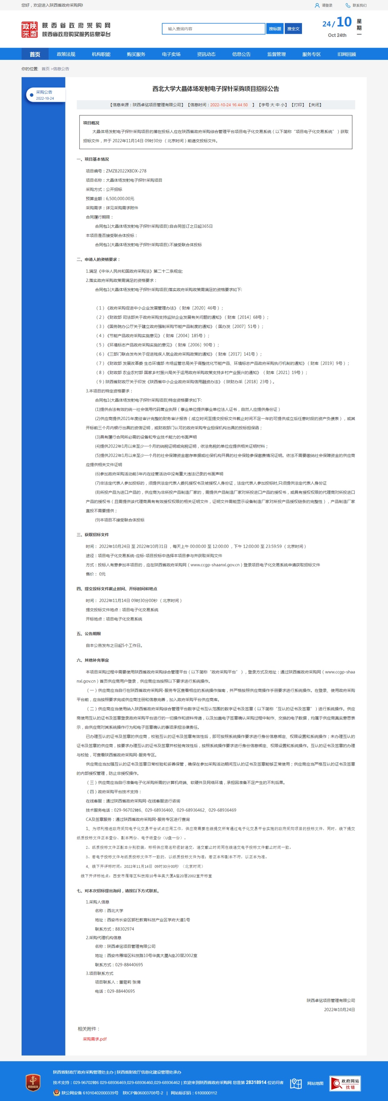 原公告链接:http://www.ccgp-shaanxi.gov.cn/freecms/site/shaanxi/ggxx/info/2022/8a69c0398405ac32018408c2f6bb39d0.html?noticeType=001011¬iceId=b7d9a3a3-5378-11ed-9a8e-08c0eb20c666