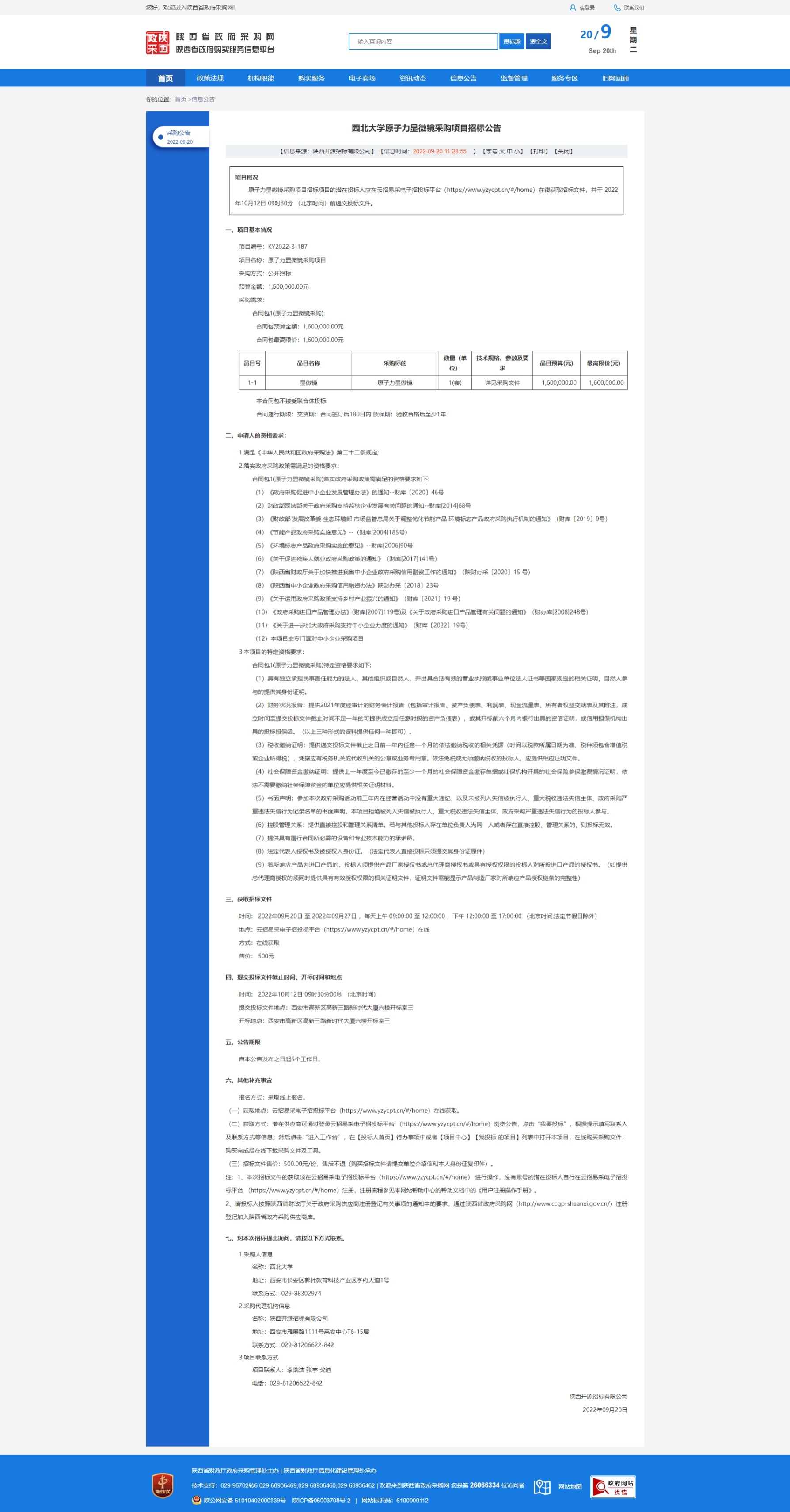 原公告链接:http://www.ccgp-shaanxi.gov.cn/freecms/site/shaanxi/ggxx/info/2022/8a69c59682a320a4018358e0a14f096f.html?noticeType=001011¬iceId=e11262de-3894-11ed-9a8e-08c0eb20c666