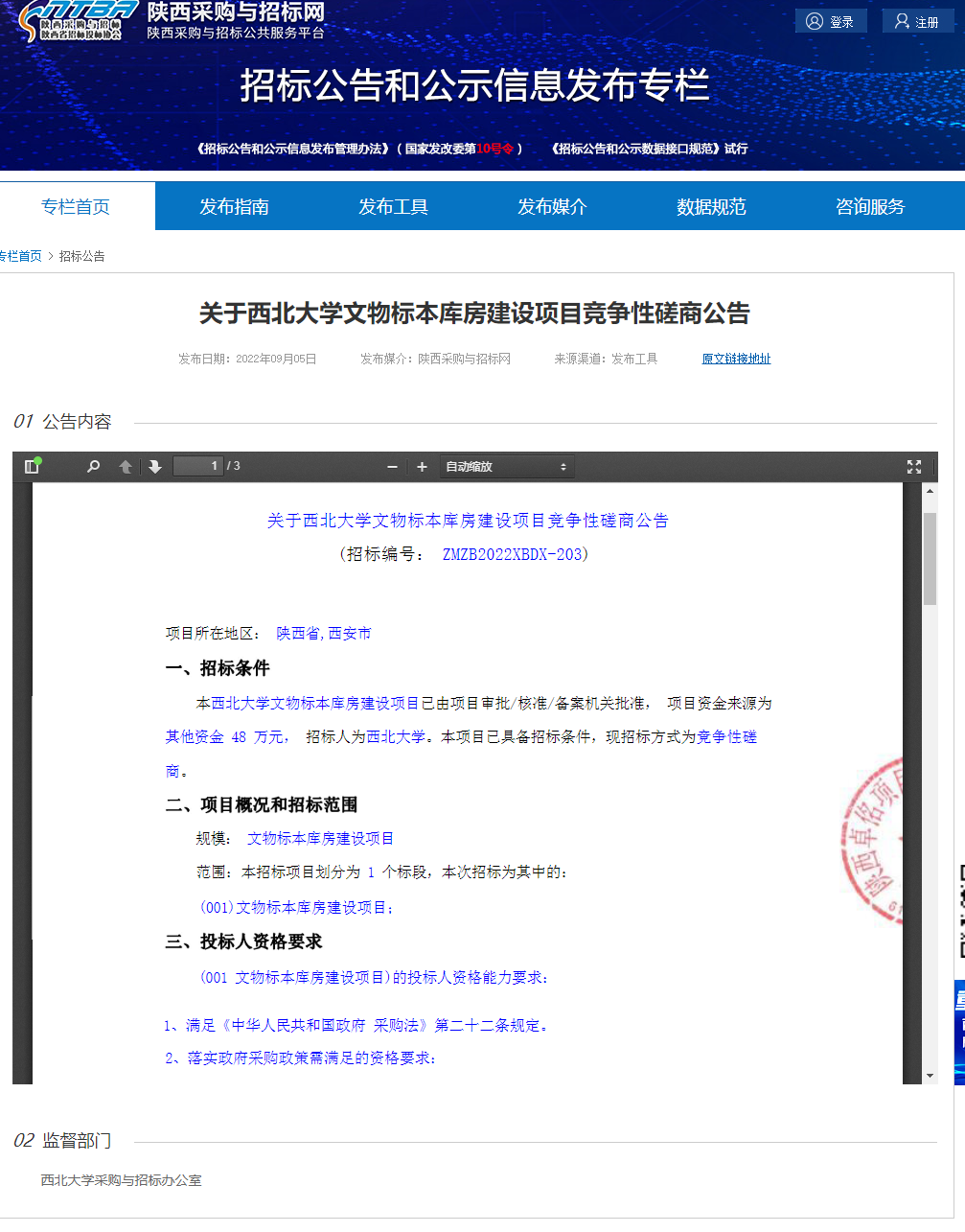 关于西北大学文物标本库房建设项目竞争性磋商公告