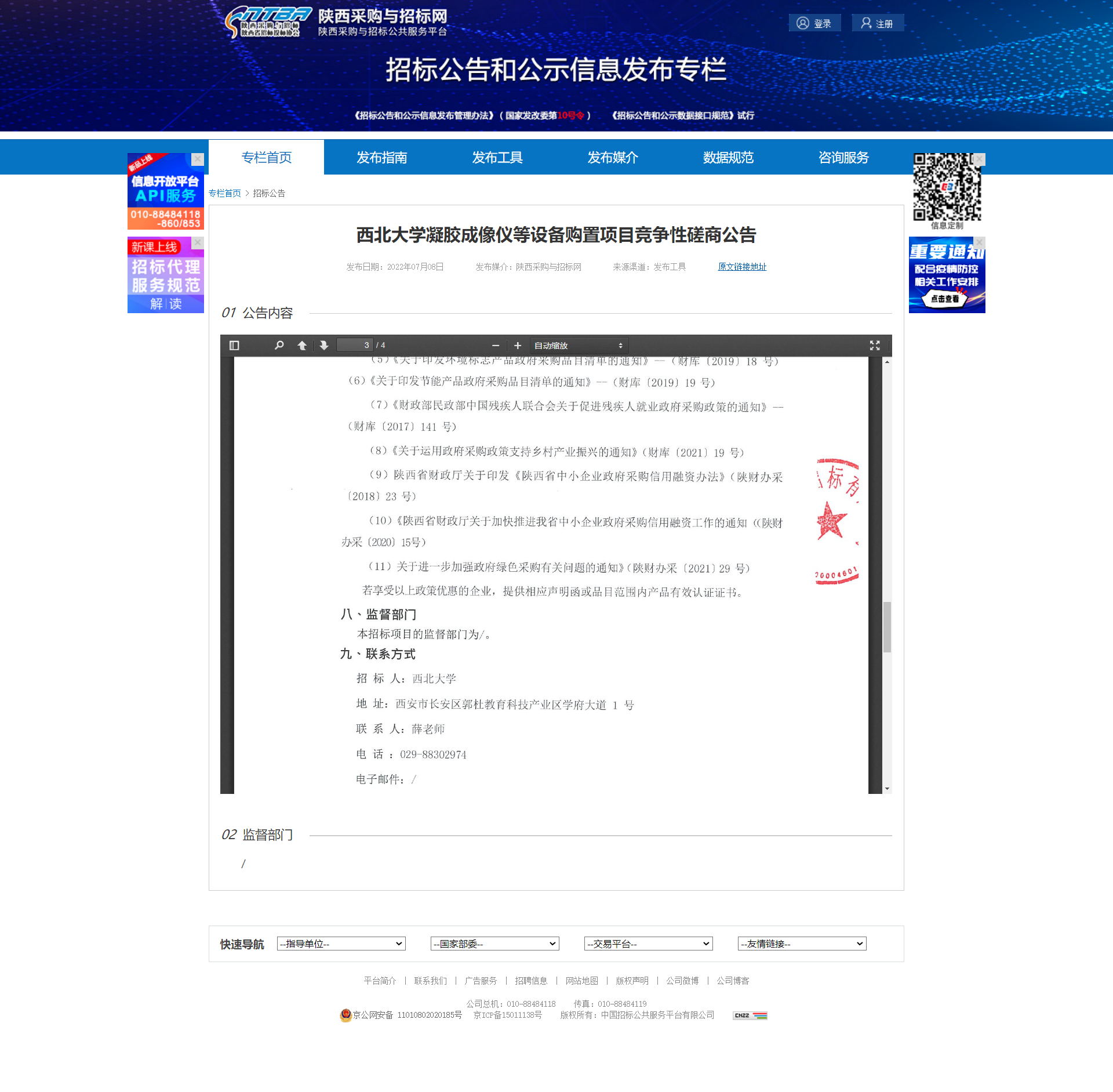 西北大学凝胶成像仪等设备购置项目竞争性磋商公告