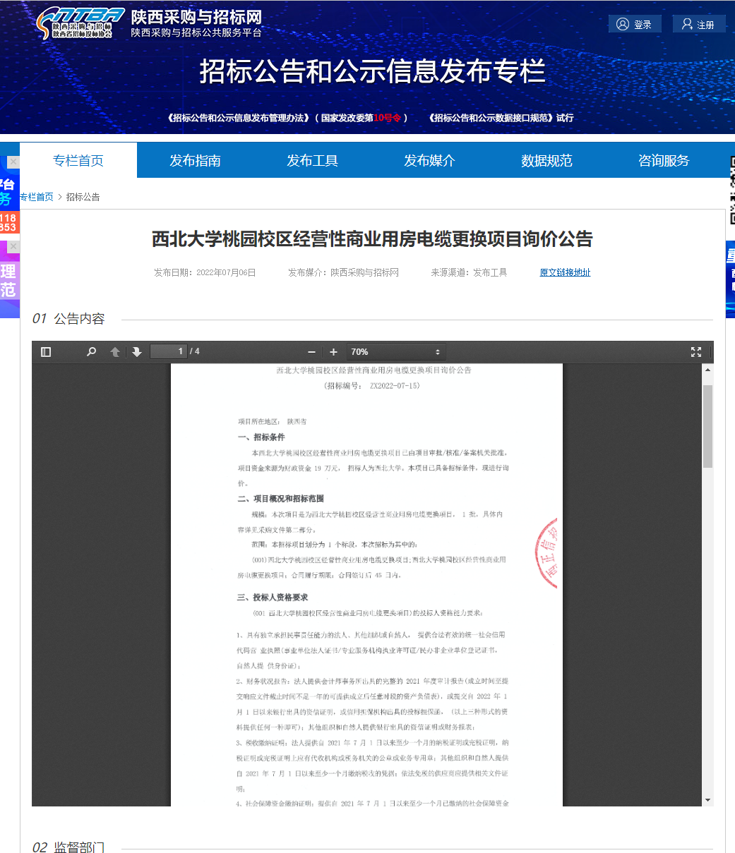 西北大学桃园校区经营性商业用房电缆更换项目询价公告