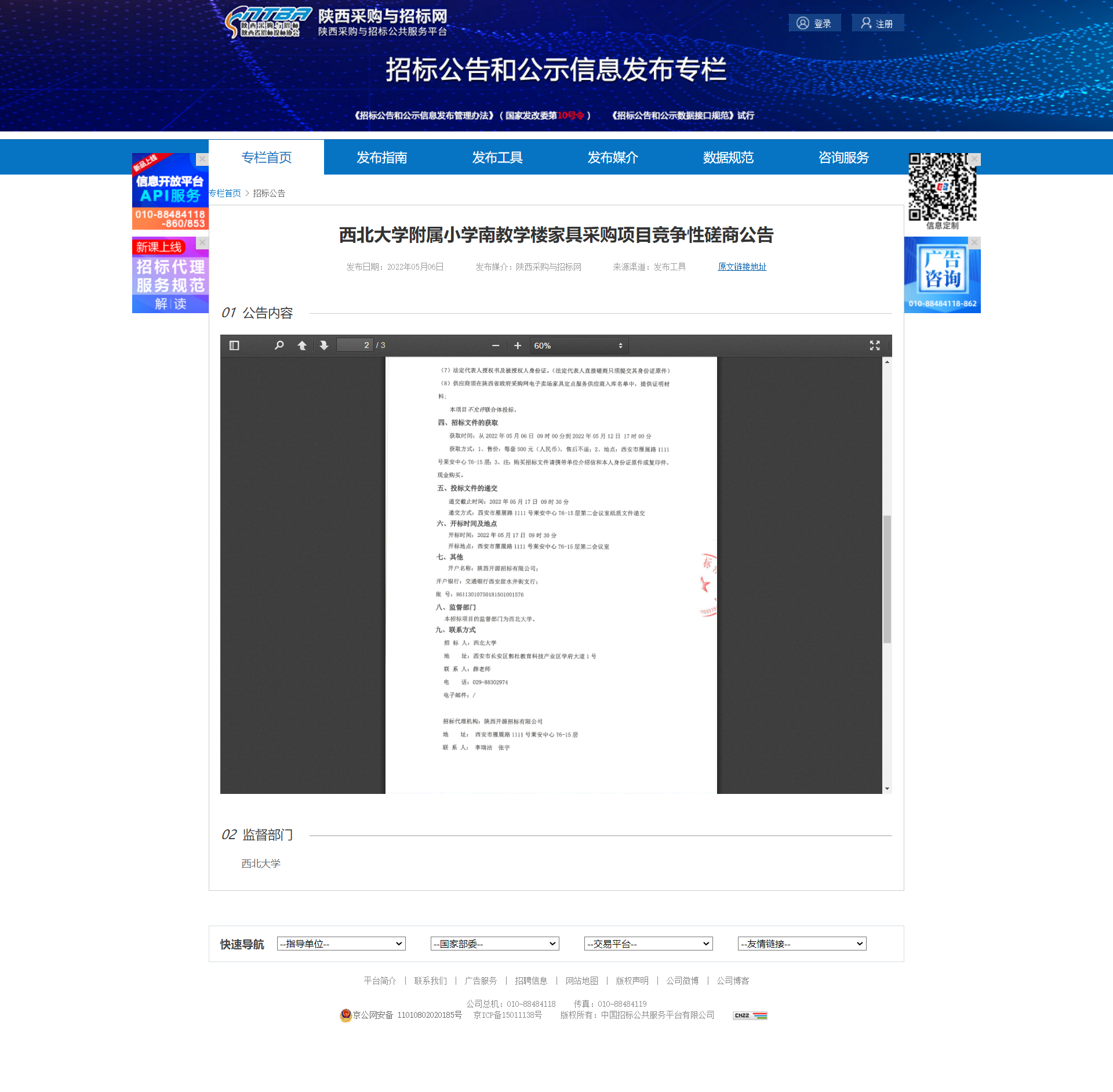 西北大学附属小学南教学楼家具采购项目竞争性磋商公告